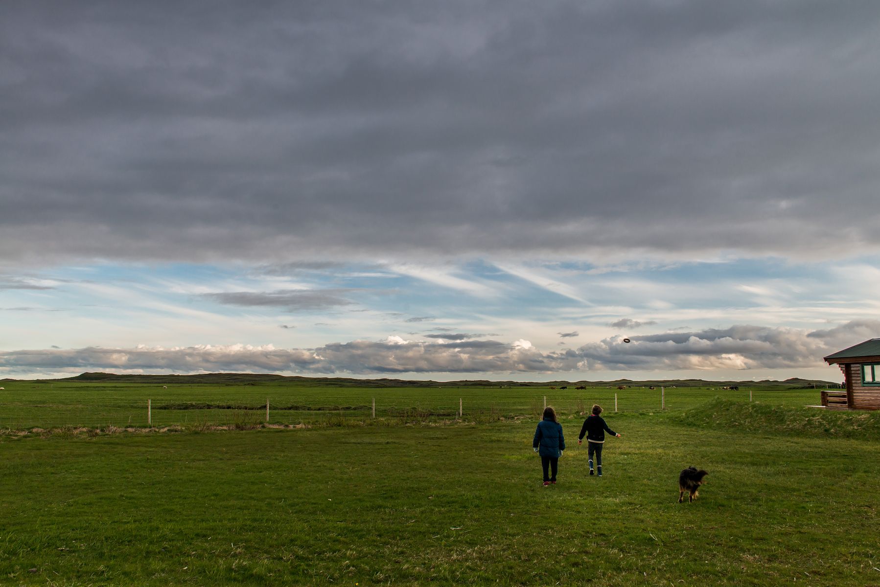 넓은 농장 한복판에 위치한 숙소입니다. 석양 속에 농장의 개가 투숙객 아이들과 즐겁게 노니는 목가적 모습이 좋습니다.