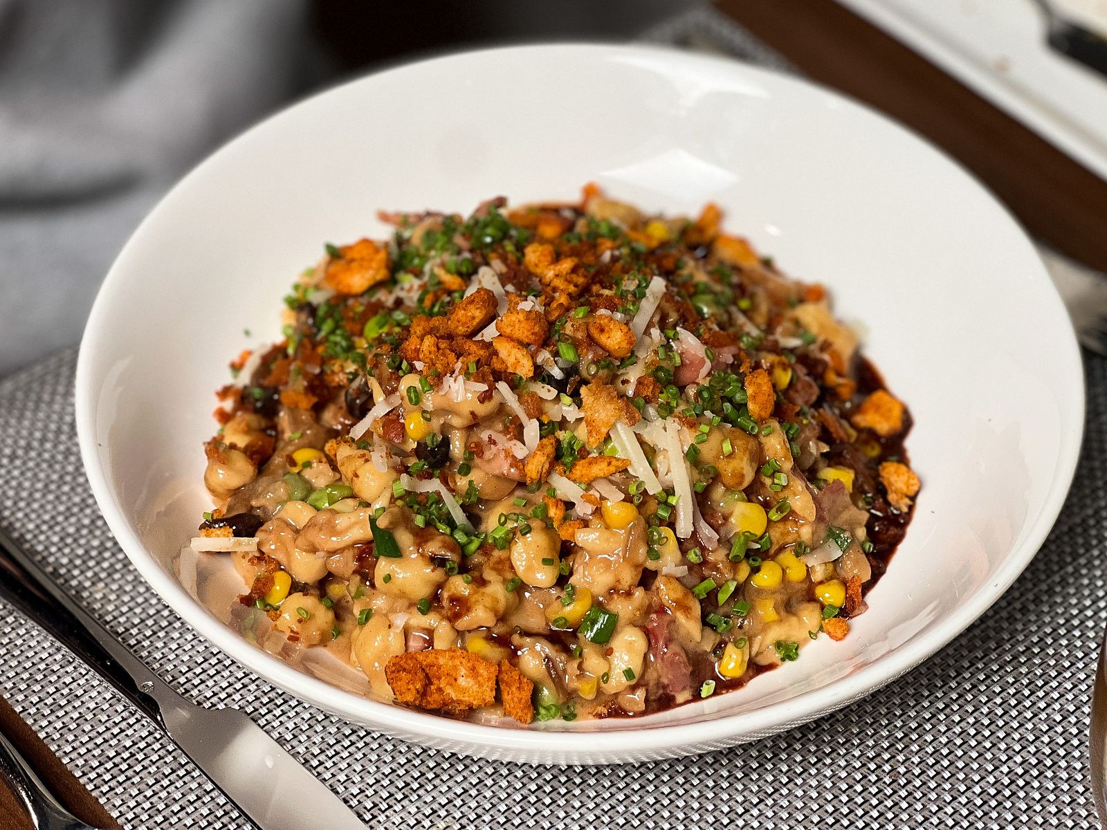 짜리몽땅한 작은 수제비마냥 아무렇게나 생긴 모양의 계란 파스타 스패쯜(Spätzle)입니다. 재료로 듬뿍 들어간 훈제 닭(smoked chicken), 초당 옥수수(sweet corn), 콩(sweet peas), 사철쑥(tarragon), 버섯(mushrooms)등이 쫄깃, 톡톡, 아삭한 다양한 식감을 연출하고 눅진한 치즈 소스와 어울려 단짠이 오가는 맛을 냅니다. 무척 사치스러운 맥 앤 치즈 (Macaroni & Cheese) 먹는 느낌? 저희는 식사를 위해 주문했지만, 이 요리는 메뉴에서 전채요리(appetizer) 중 하나입니다.