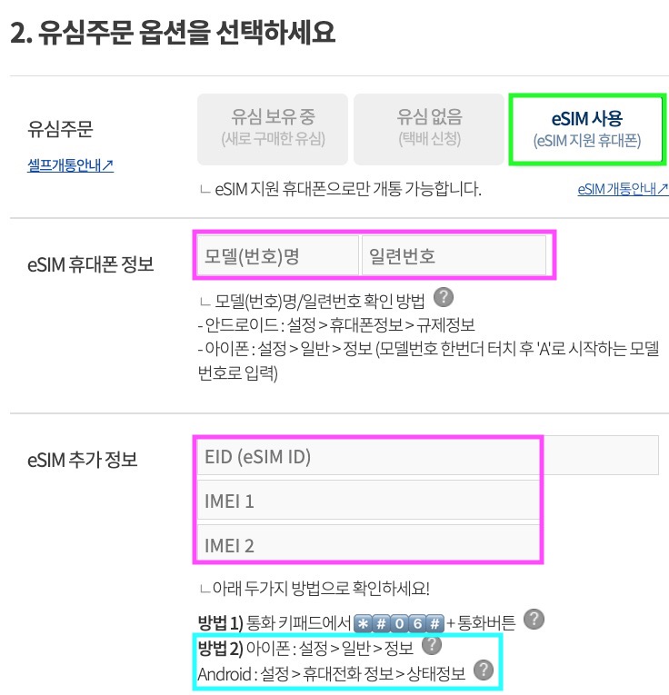 - 사용 전화기 기종이 eSIM을 지원하는가? (지원 핸드폰 목록)