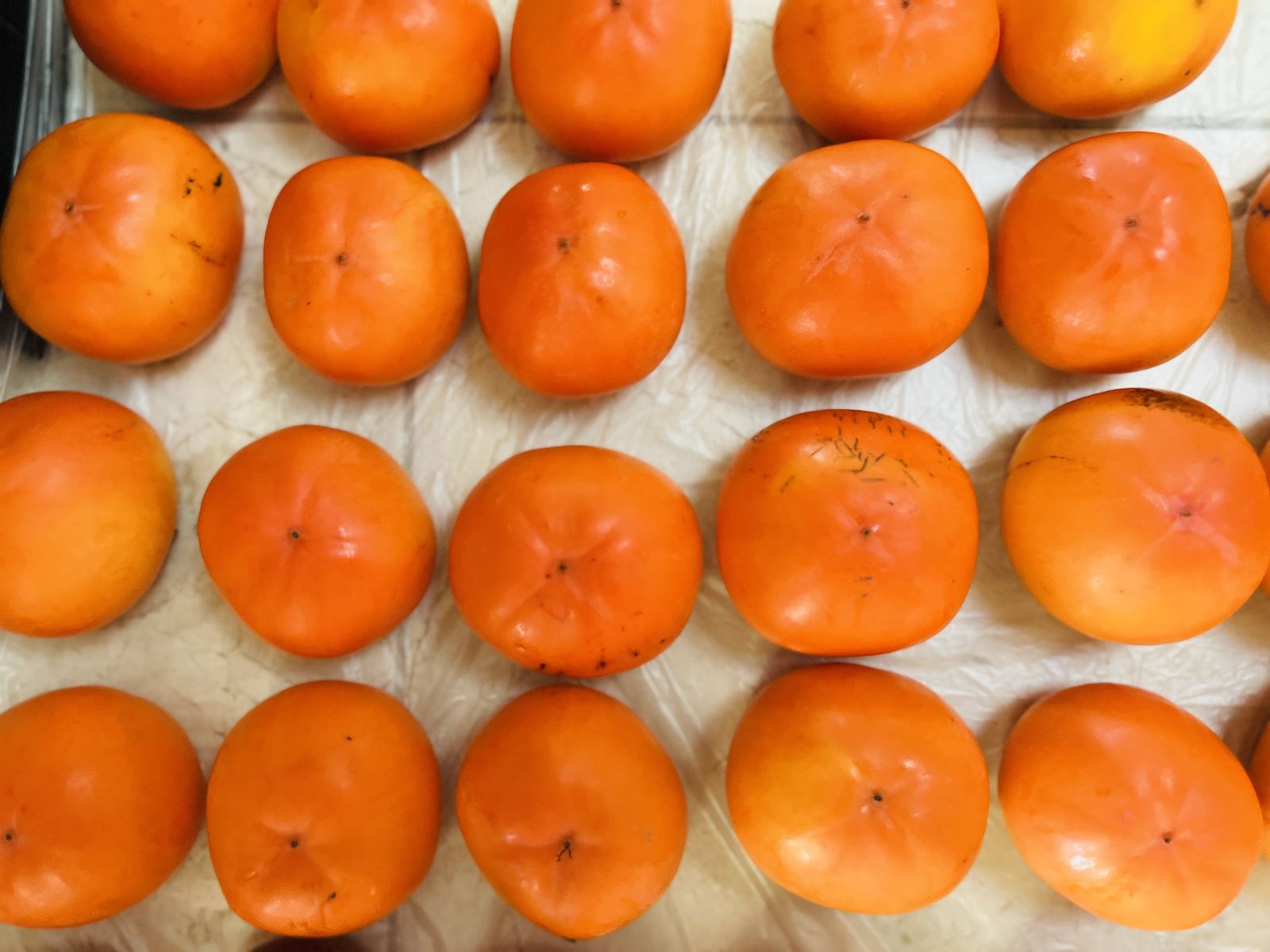 이건 떫은감입니다. 나무 살 때 coffee cake persimmon (Nishimura Wase)라는 단감이라고 쓰여 있어 샀는데요, 생김새나 거뭇거뭇한 단면 색깔등은 일치하지만 무척 떫더군요. 이건 익혀서 홍시 만들거나, 건조 시켜서 먹습니다 ["홍시의 계절"]
