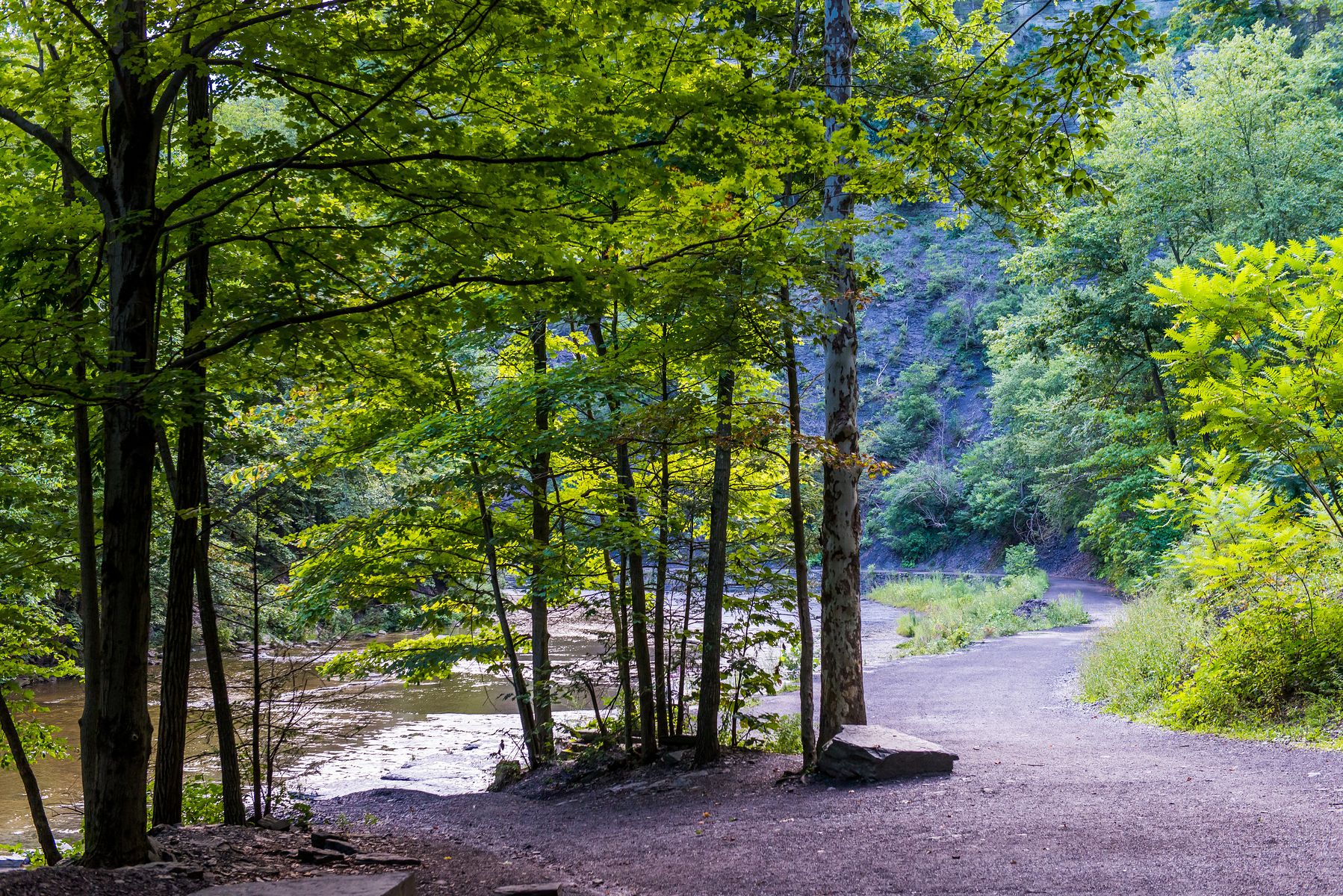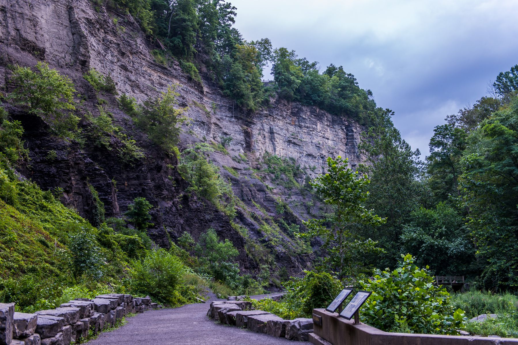 그 반대편으로는 협곡 산책로(Gorge Trail)가 시작 됩니다. 이 산책로는 평지라서 핑거 레이크(Finger Lakes) 지역에 있는 여러개의 협곡(gorges)들 중에 유일하게 일년 내내 연다고 합니다. [왕복 2.88Km = 42분, 오르막 고도 약 56m = 아파트 22층 (체감적으로는 완전 평지) 난이도 2/10]