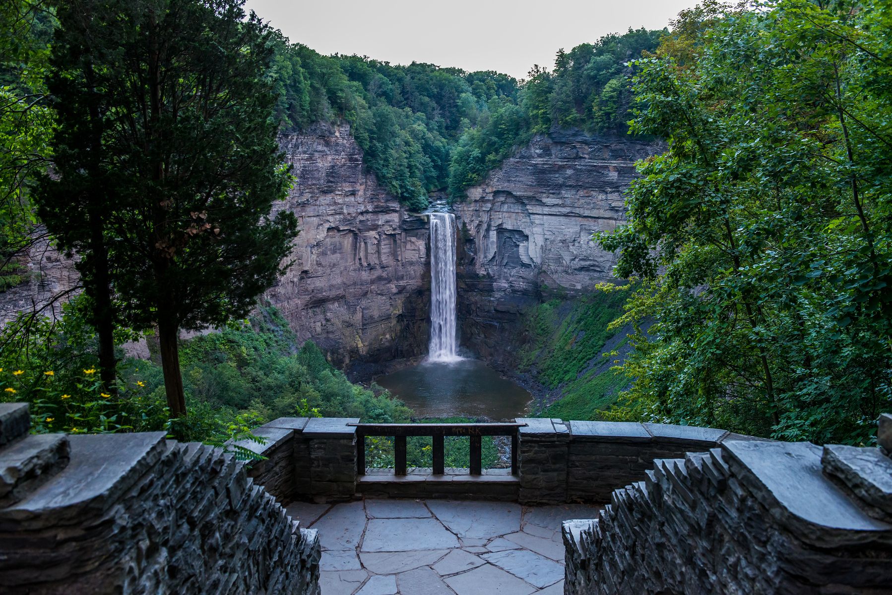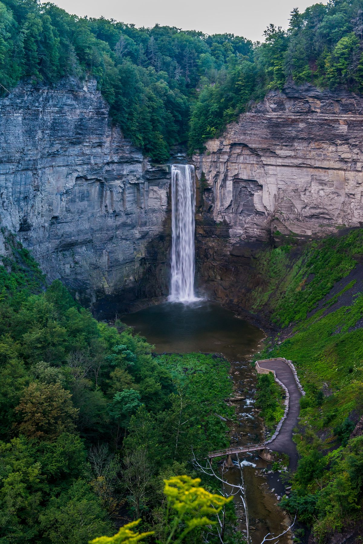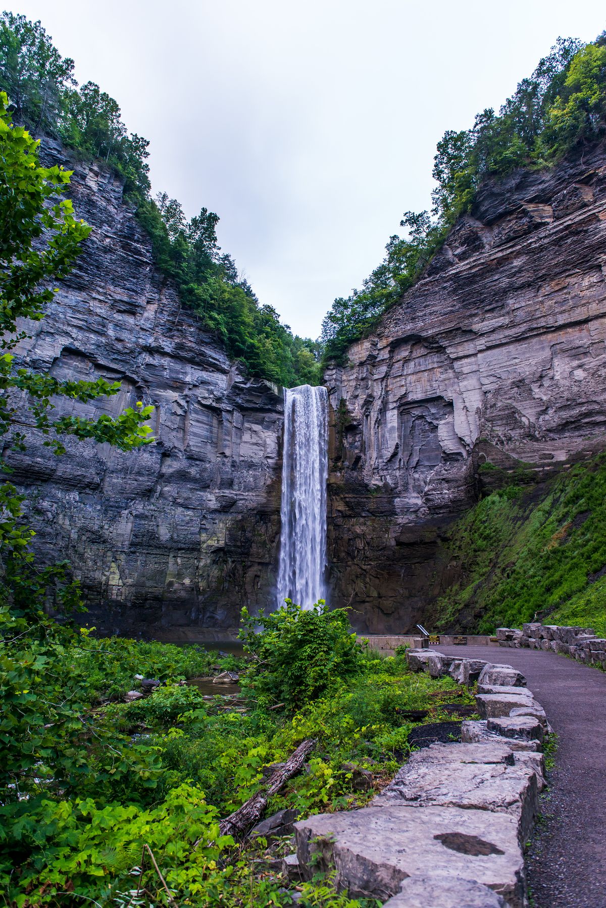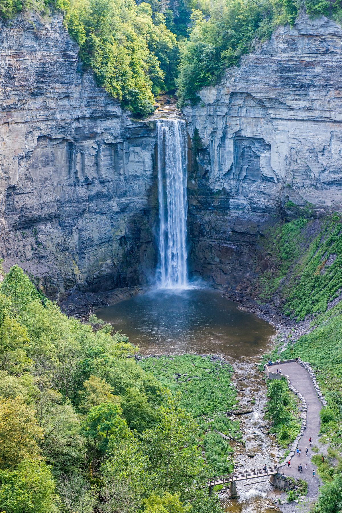"Taughannock Falls View Point"에서 내려다 보는 폭포의 모습입니다. 높이 66m에 폭이 13.7m라서 나이아가라 폭포(Niagara Falls)나 Iceland의 스코하포스(Skógafoss, 스코가포스) 같은 것에 비할 정도의 규모는 결코 아니지만 뉴욕 주 내에서는 가장 높은 폭포이고 무엇보다 깔끔한 암벽과 숲으로 이루어진 주변 경관이 거의 완벽한 대칭을 이루고 있어 사진가들이 무척 좋아할 만한 곳이군요.