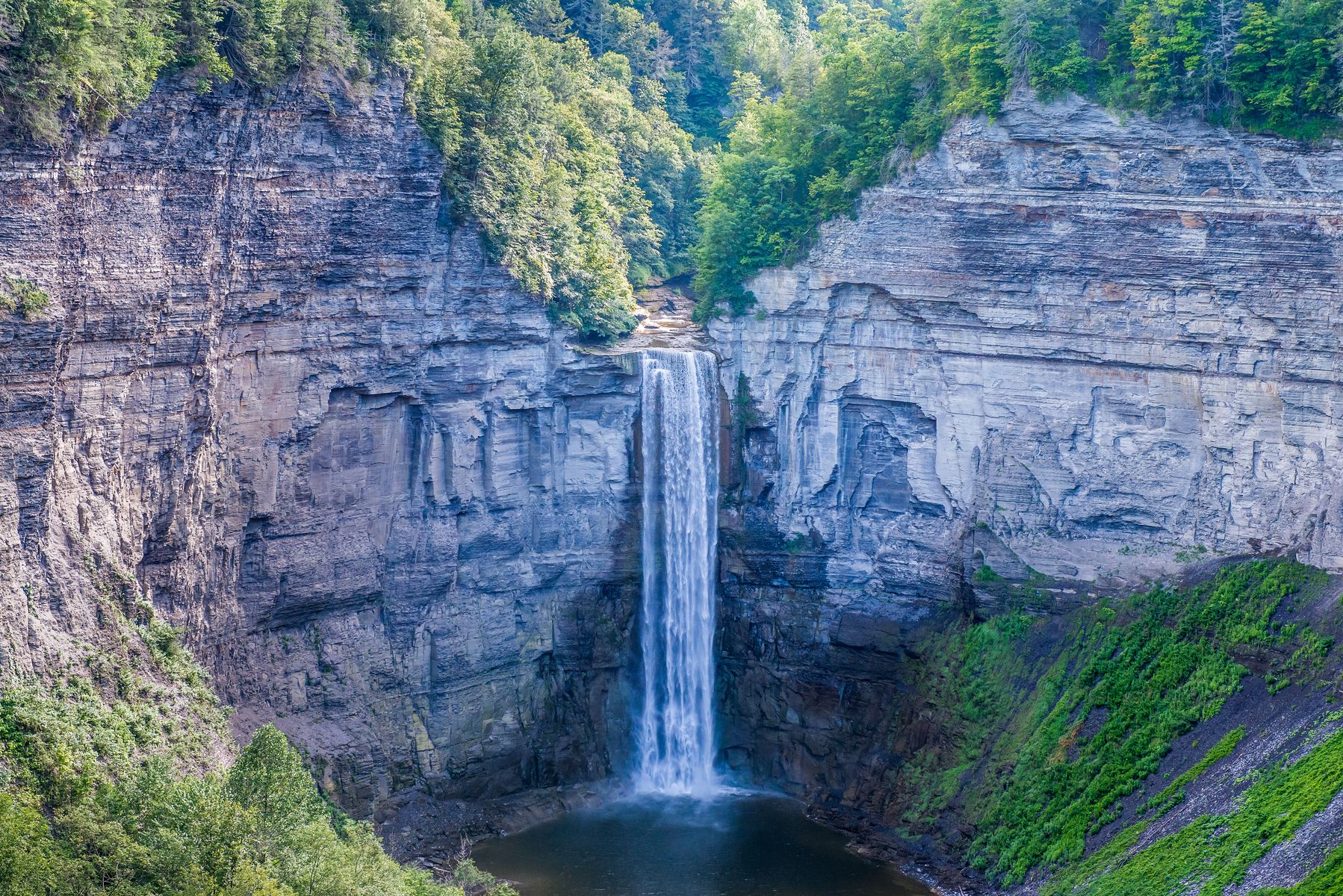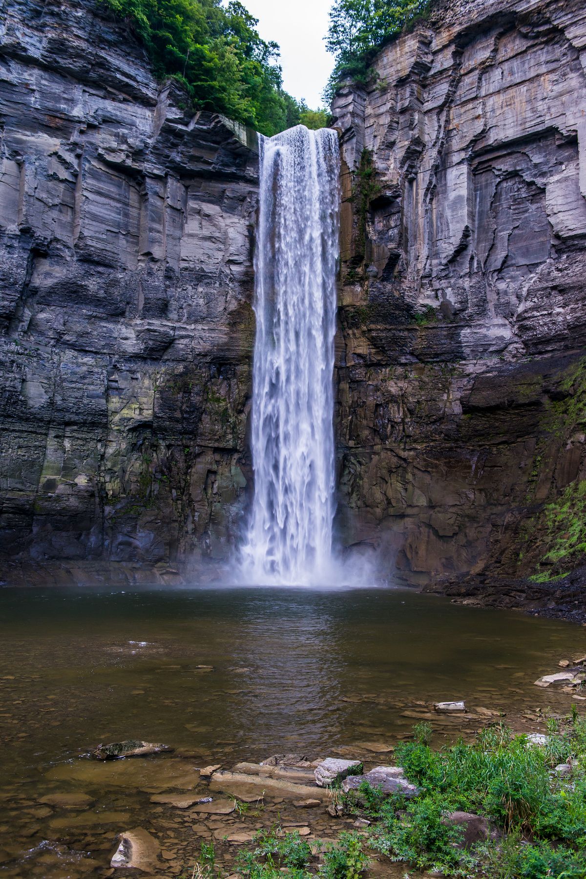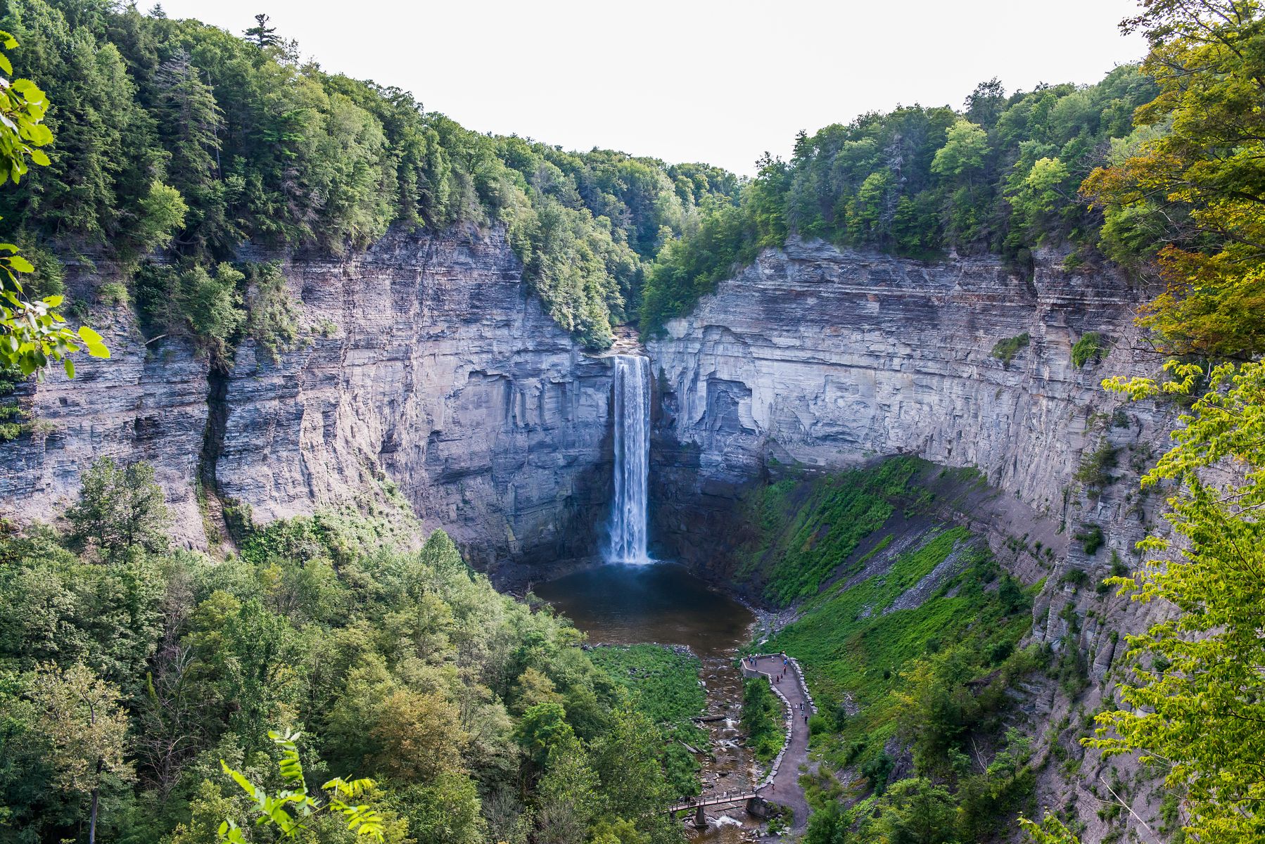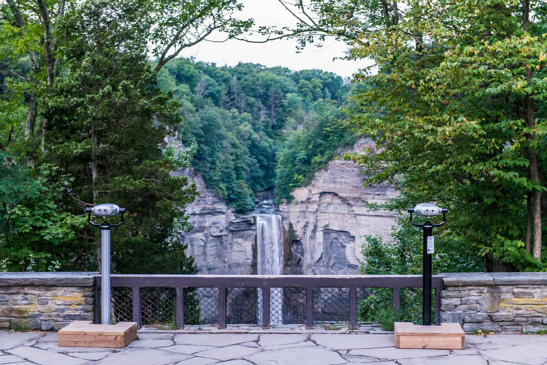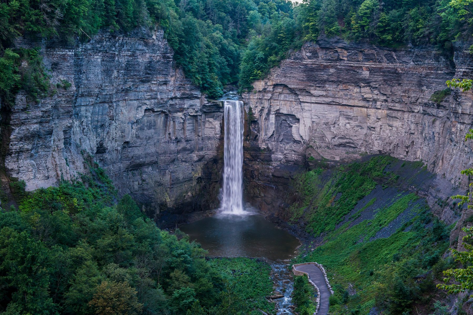 "Taughannock Falls View Point"에서 내려다 보는 폭포의 모습입니다. 높이 66m에 폭이 13.7m라서 나이아가라 폭포(Niagara Falls)나 Iceland의 스코하포스(Skógafoss, 스코가포스) 같은 것에 비할 정도의 규모는 결코 아니지만 뉴욕 주 내에서는 가장 높은 폭포이고 무엇보다 깔끔한 암벽과 숲으로 이루어진 주변 경관이 거의 완벽한 대칭을 이루고 있어 사진가들이 무척 좋아할 만한 곳이군요.