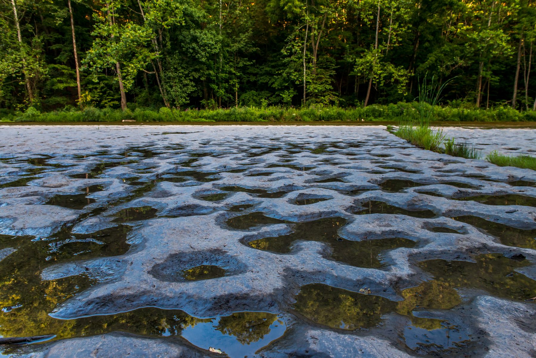 물이 줄어들어 바닥이 드러난 곳도 모래 대신 우둘두둘한 암반이고요.