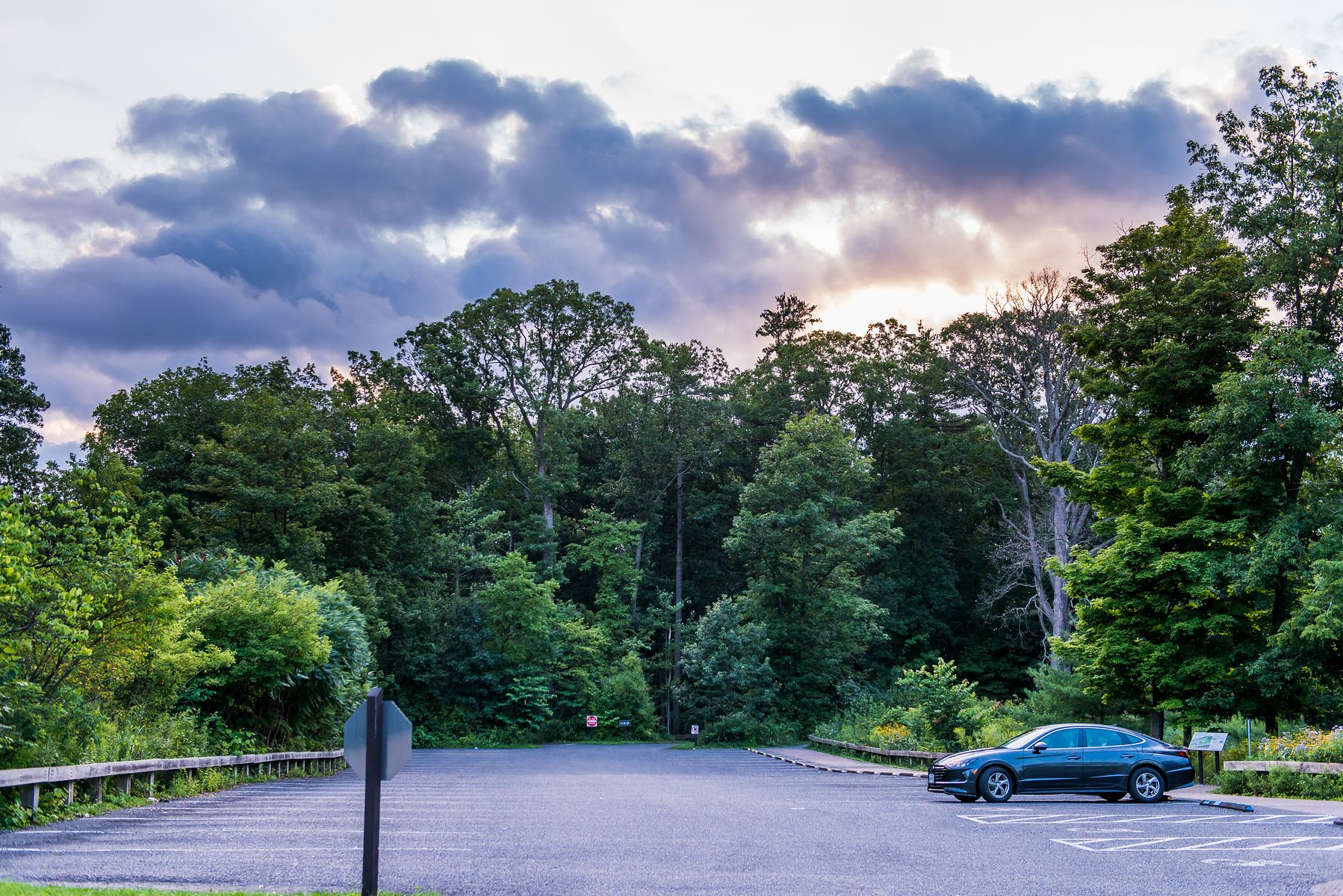 "Taughannock Falls Gorge Trail" 주차장입니다. 주립 공원이라서 초소에서 $9의 주차 요금을 징수하는데, 7시 이전에 가면 그냥 통과할 수 있습니다. 주차 공간이 크지 않아 20여대 밖에 세울 수 없지만, 자리가 없으면 건너편 호수가 주차장으로 가면 됩니다.