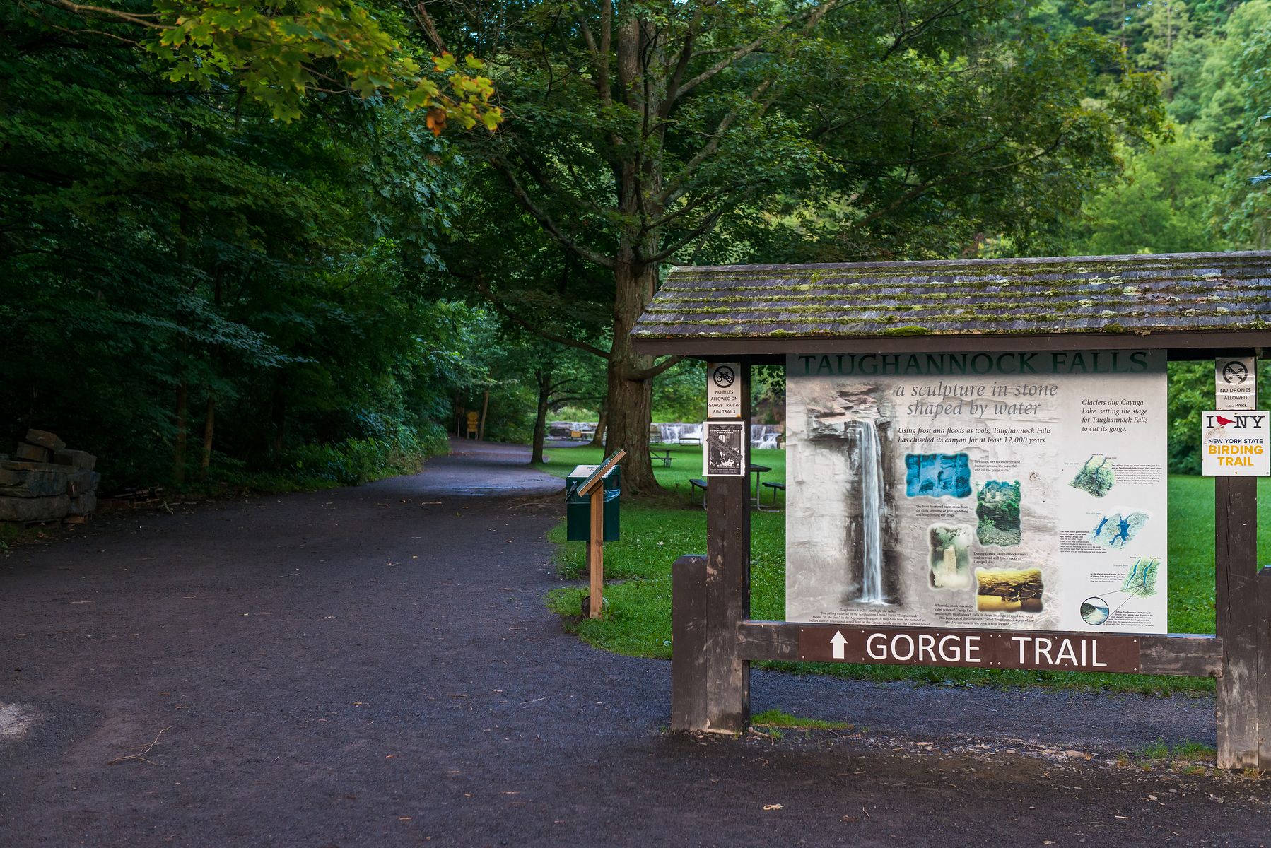 "Taughannock Falls Gorge Trail" 주차장을 향해 떠났습니다. Gorge Trail (협곡 산책로) 주차장은 "Taughannock Falls State Park (터개넉 폭포 주립 공원)"의 커다란 메인 주차장 건너편에 있습니다.