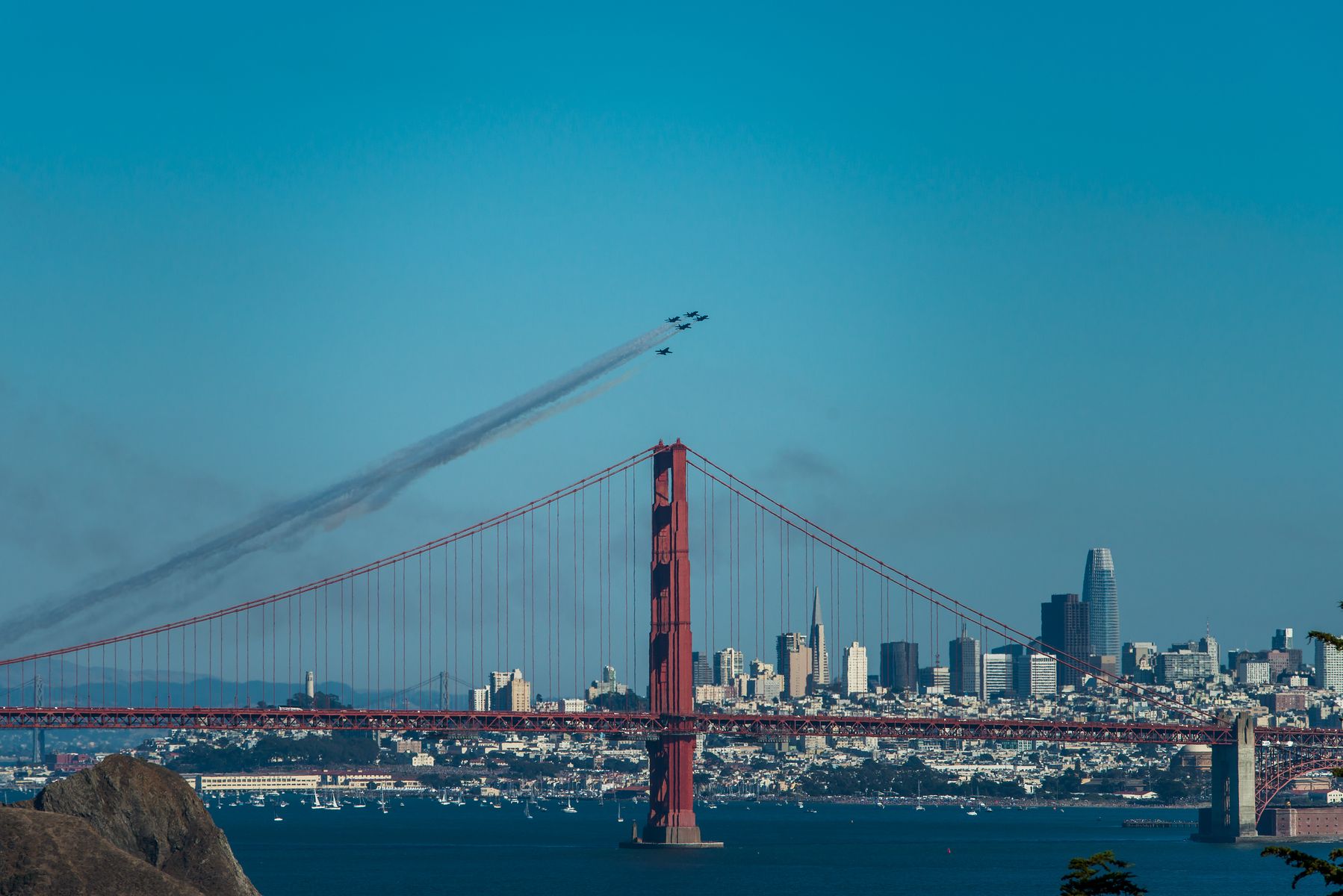 3:30pm 정도부터 6대로 늘어난 편대가 금문교 상공을 휘젓고 다니기 시작했습니다.