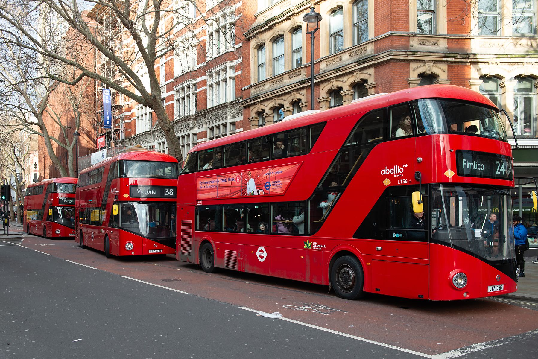 빨간색 2층 버스. 앞뒤 머리를 둥글게 하고 LED headlight 장착한 최신 모델 짱 세련 됨.