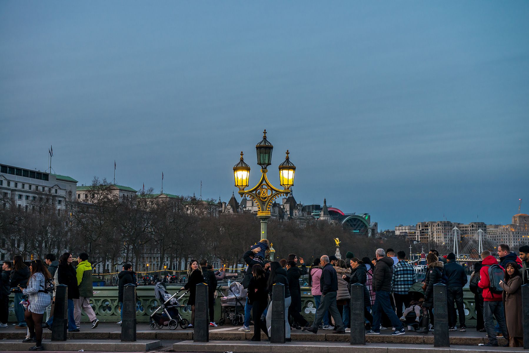 사진 찍으려고 해지고 20분 후쯤 갔더니 여기도 인파가 엄청 나네요. Westminster Bridge 위에는 사람이 지나다기기 힘들 정도로 많은 사람들이 있었습니다. 저렇게 많은 사람들이 있으면 다리가 혹 무너지지는 않을까 염려될 정도였네요.