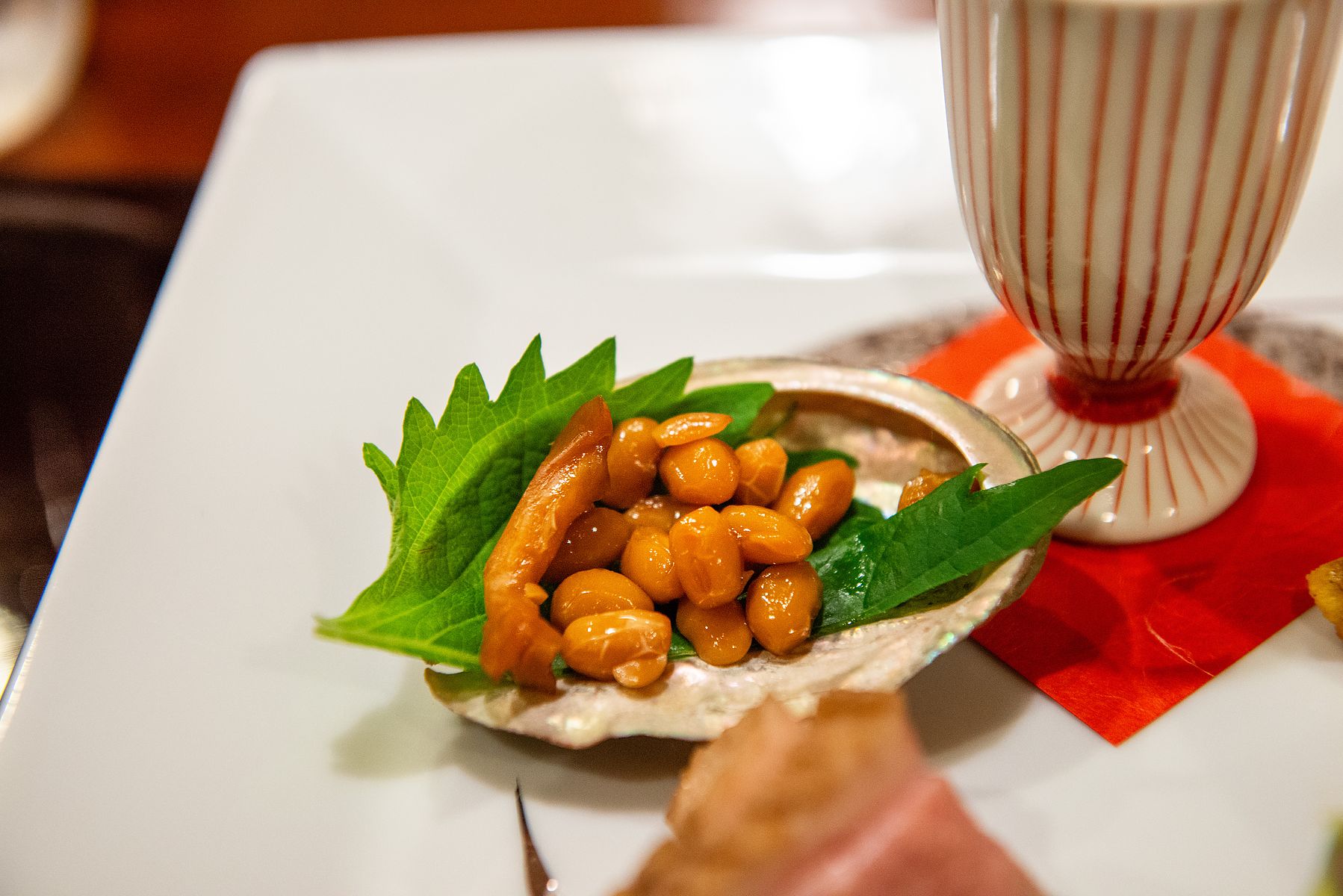 츠부(つぶ) 전복 조림(大船煮 오부네니). 전복에 콩을 넣고 조린 음식이라고 합니다. 콩 덕인지 엄청 부드럽네요.