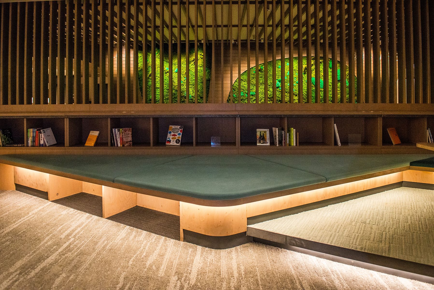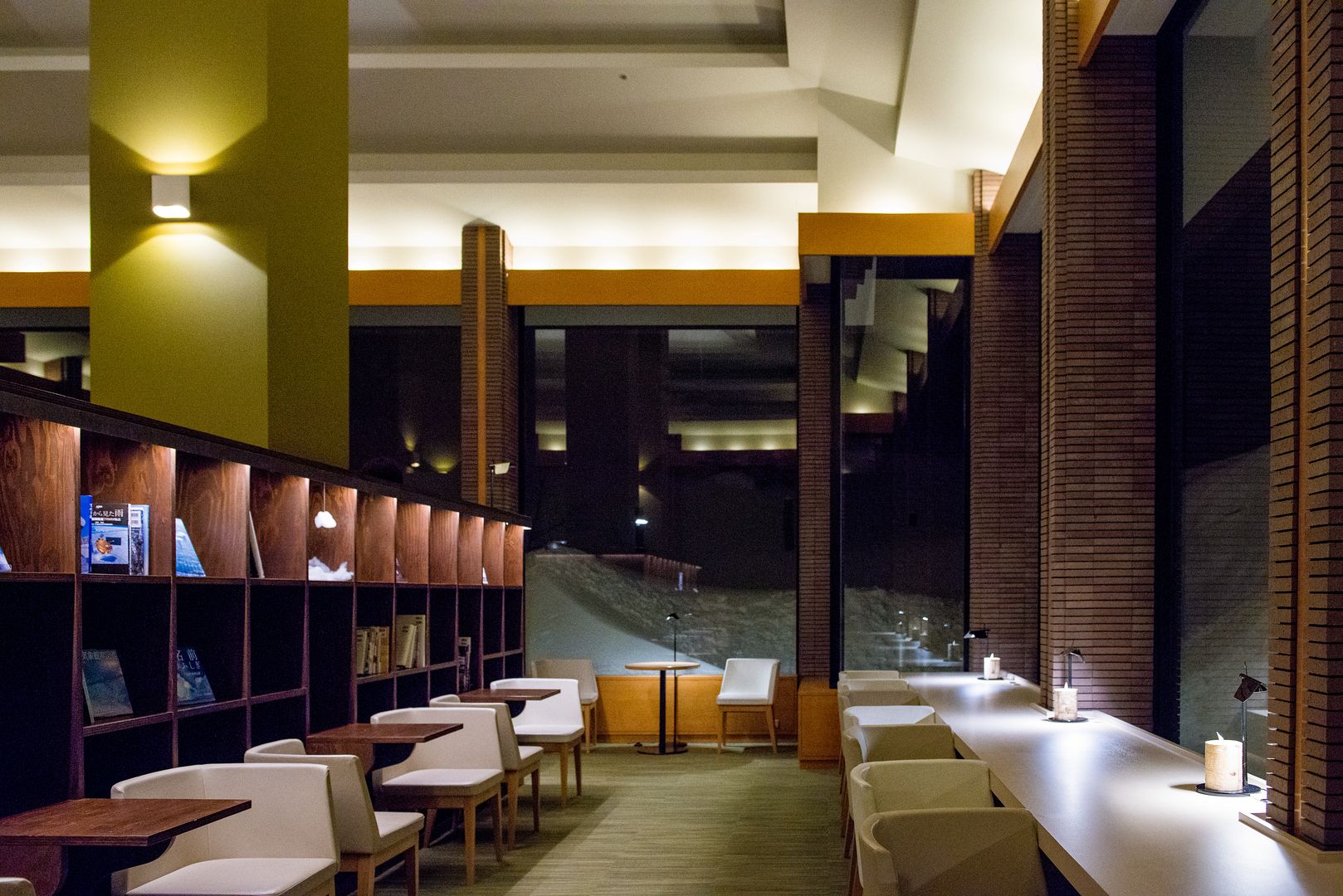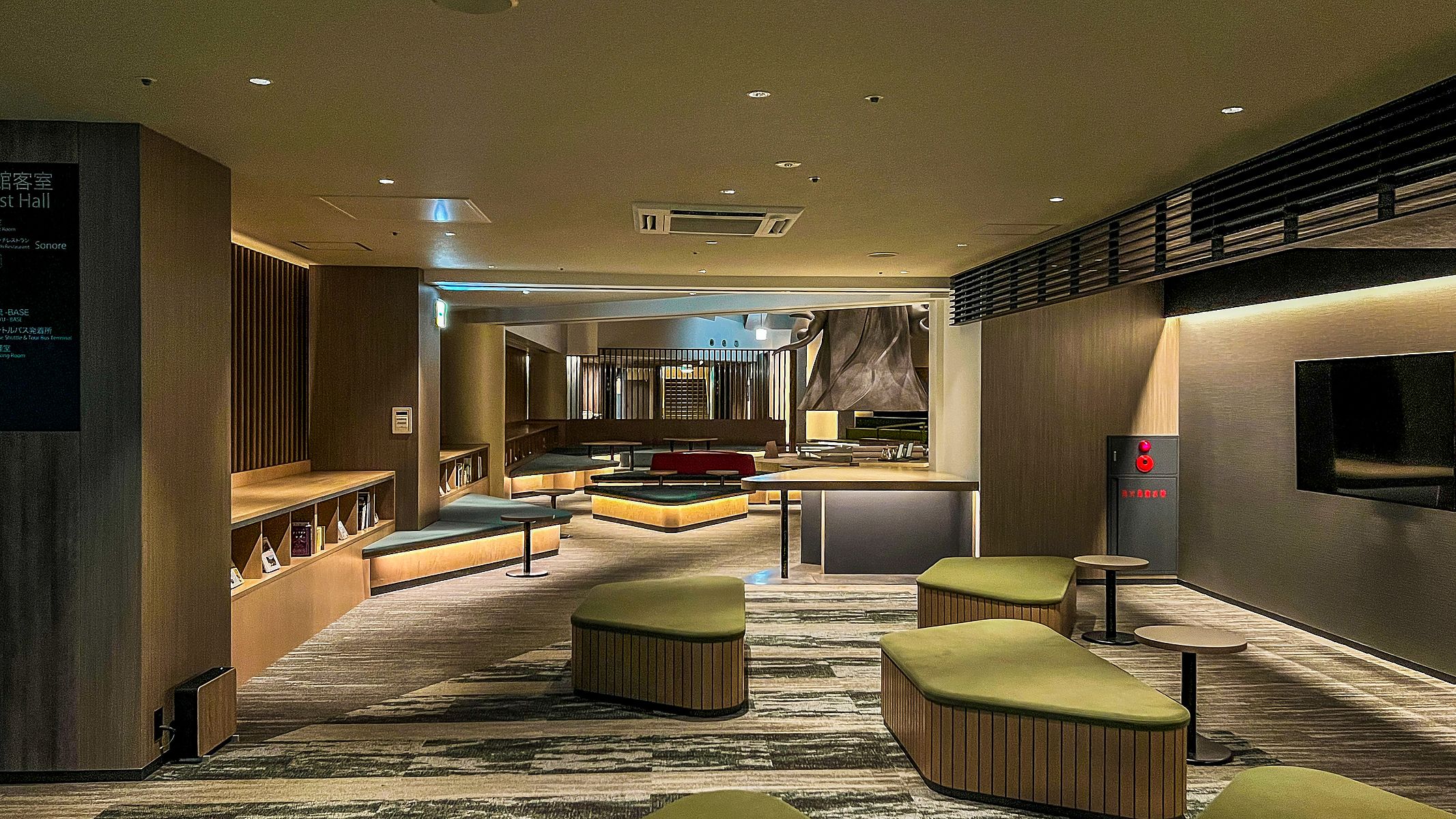 눕건 앉건 자기 집 거실에 있듯 각자 원하는 편한 자세로 시간을 보낼 수 있도록 설계 한 이곳에는 무료 셀프 에스프레소 커피 (self-serviced espresso coffee), 드립 커피 (drip coffee), 차 (teas) 등이 구비되어 있으며, 같은 장소에서 매일 저녁 "케이류 디스커버리 (渓流 Discovery)"라는 제목의 무료 강의도 일본어로 제공 합니다.