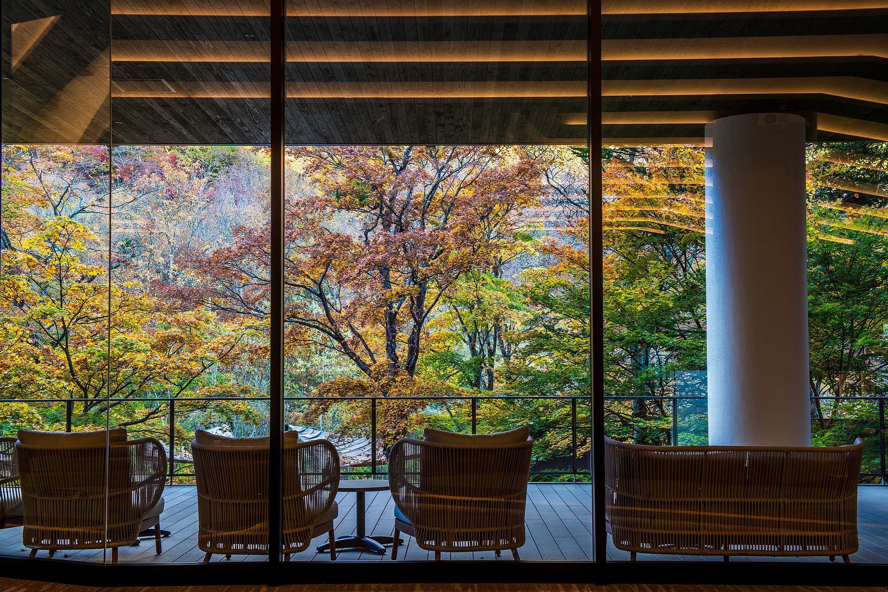 이 로비 바로 밖에는 "세세라기 데크 (せせらぎ deck)"가 있습니다. "세세라기"는 물이 흐르는 소리를 뜻합니다.