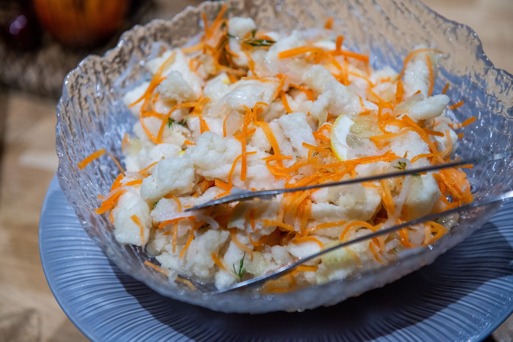 사과를 중심으로 만든 다채로운 채식 샐러드