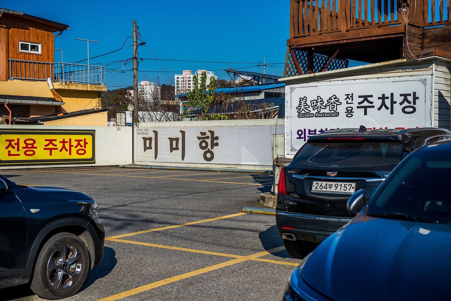 식당 건물 맞은 편에 넓찍한 전용 주차장이 있습니다.