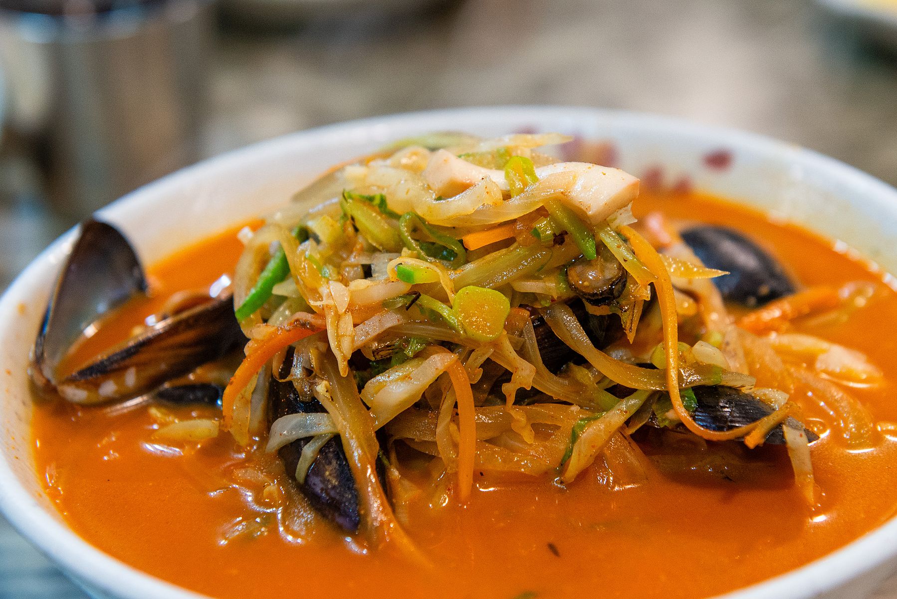 맵찔이인 분들도 충분히 즐길만큼 살짝 칼칼한 정도의 짬뽕. 통상 MSG를 퍼 붓는 것이 정상(?)인 면 종류에서도 MSG는 거의 느껴지지 않고 듬뿍 들어간 채소들과 해산물의 국물이 잘 우러난 담백하고 정직한 맛 이었습니다.