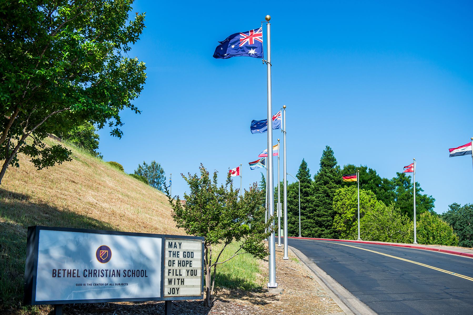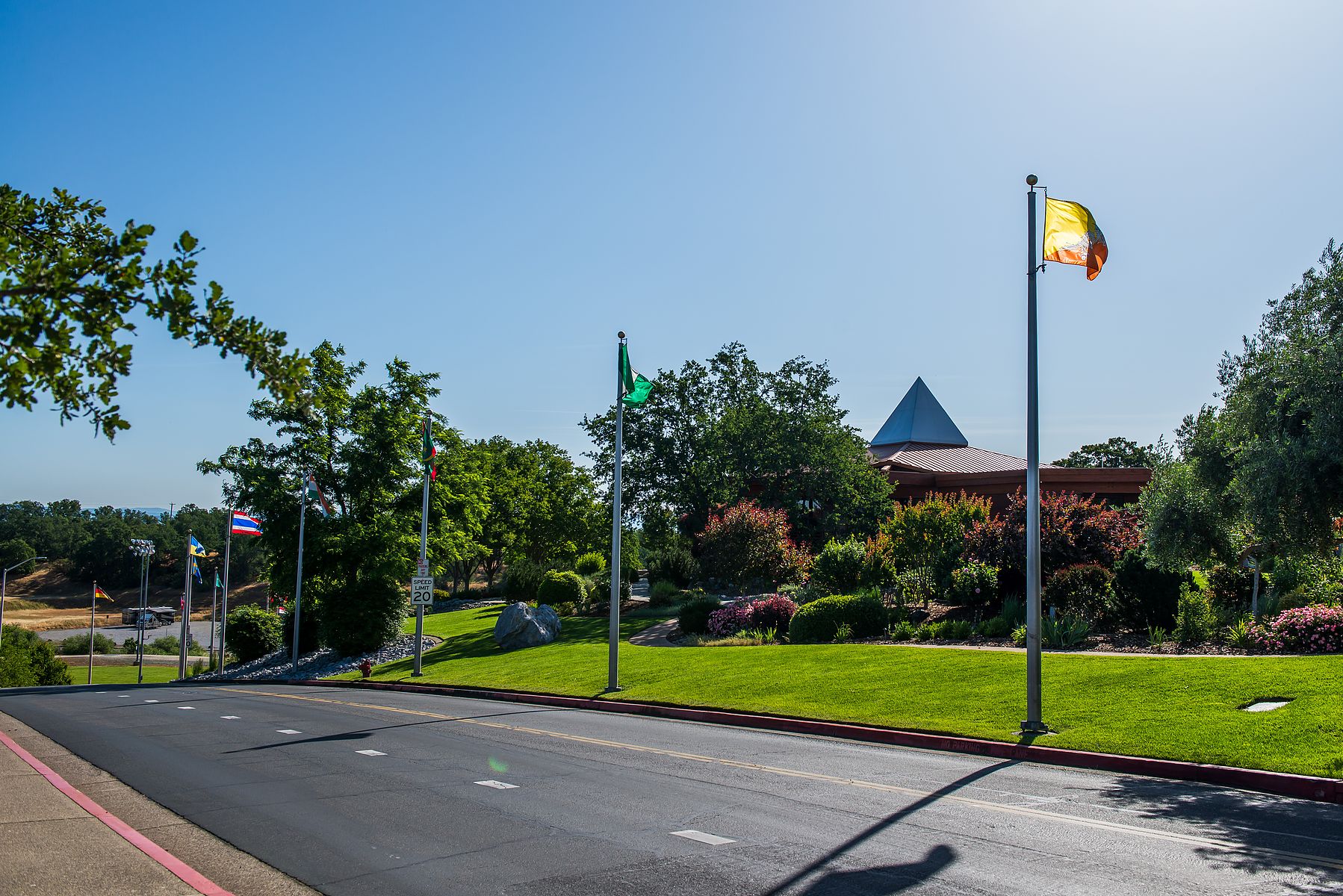 교회 캠퍼스로 진입하는 입구에는 열방의 길 (Avenue of the Nations) 라는 작은 표지판이 있고 길 양 옆으로 만국기들이 게양되어 있습니다.