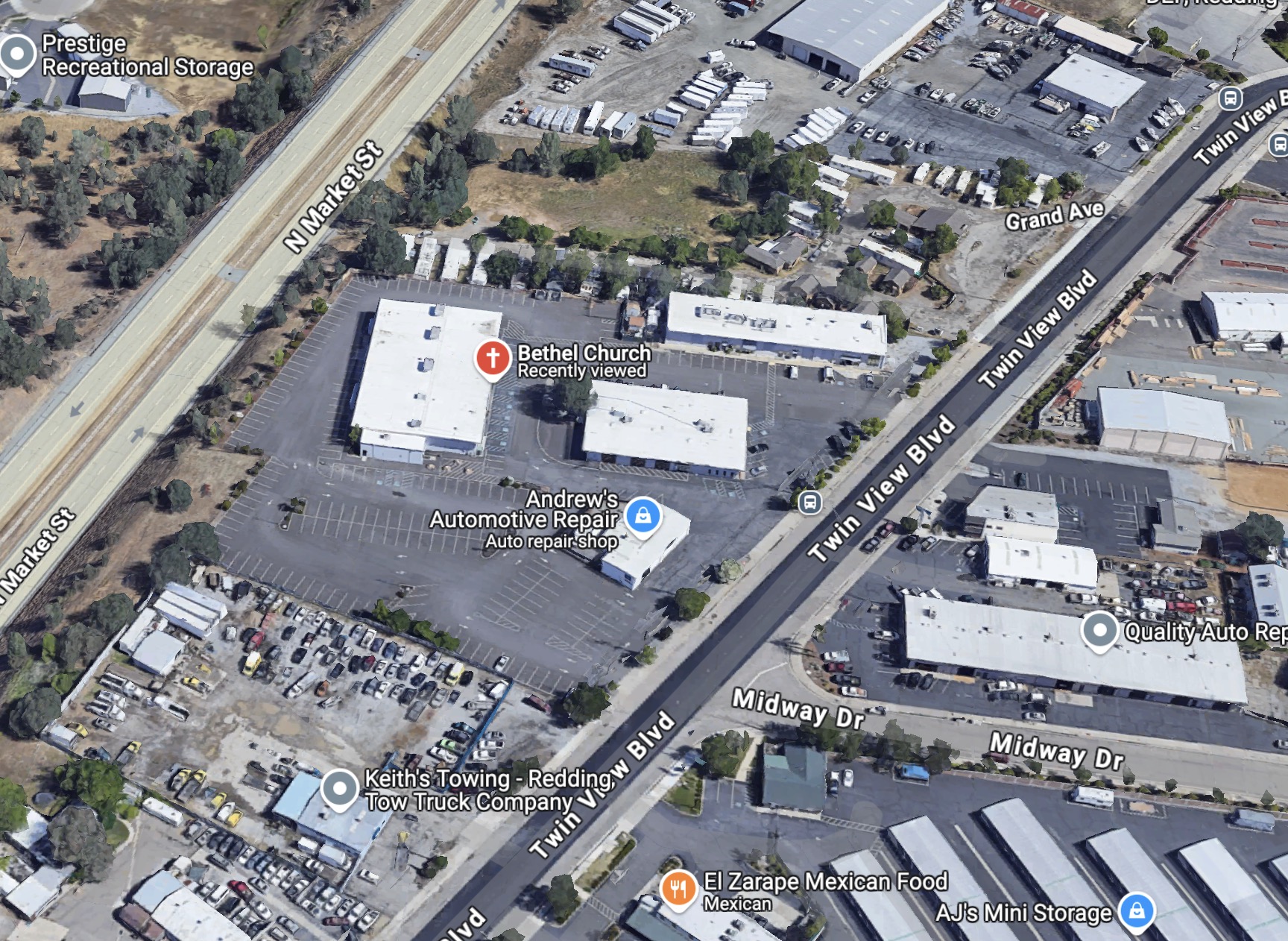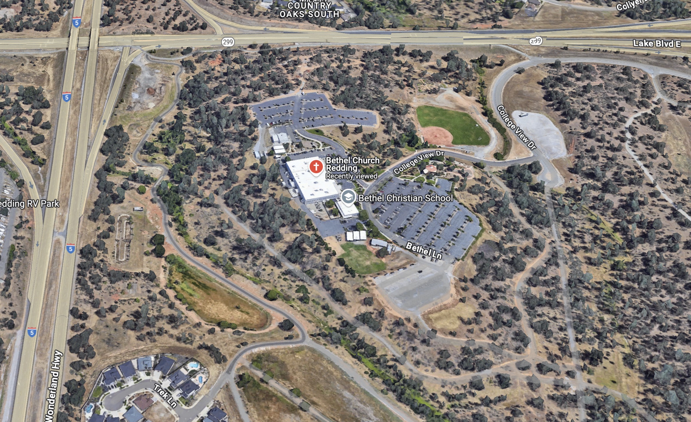 이 센트럴 밸리의 북쪽 끝 후미진 곳에 위치한 도시 레딩 (Redding) 에 벧엘 교회가 있습니다. 레딩 다운타운까지 기차 (Amtrak) 로도 가는 것이 가능은 하지만 연계 교통편도 무척 불편하고 새벽 3시 경에 도착하기 때문에 추천하지 않습니다.
