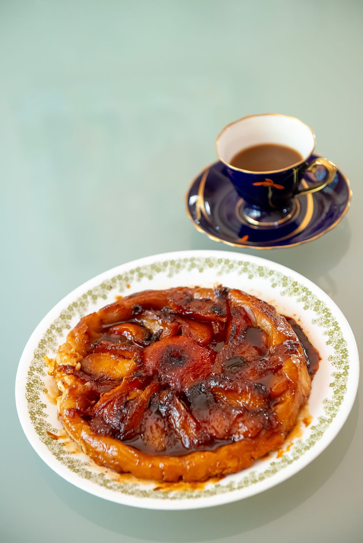 - 오븐에서 꺼낸 팬을 중불에 잠깐 다시 올려 바닥을 녹게한 후 팬보다 조금 큰 접시를 덮어 뒤집어 내면 완성입니다. 화상을 주의하되 단호하고 신속하게 뒤집어야 합니다.