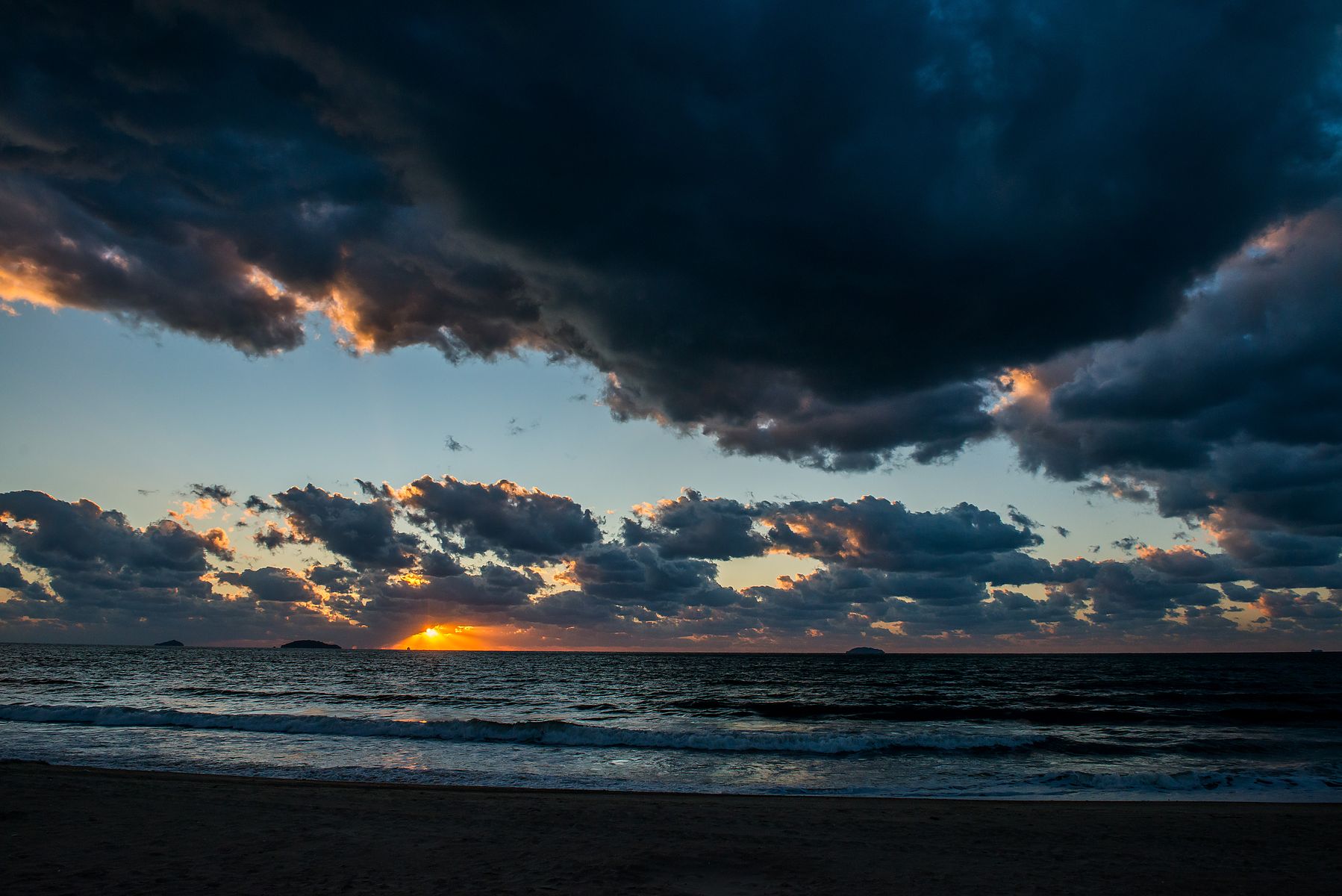 해질 녁에 내려와 해변으로 갔습니다.
