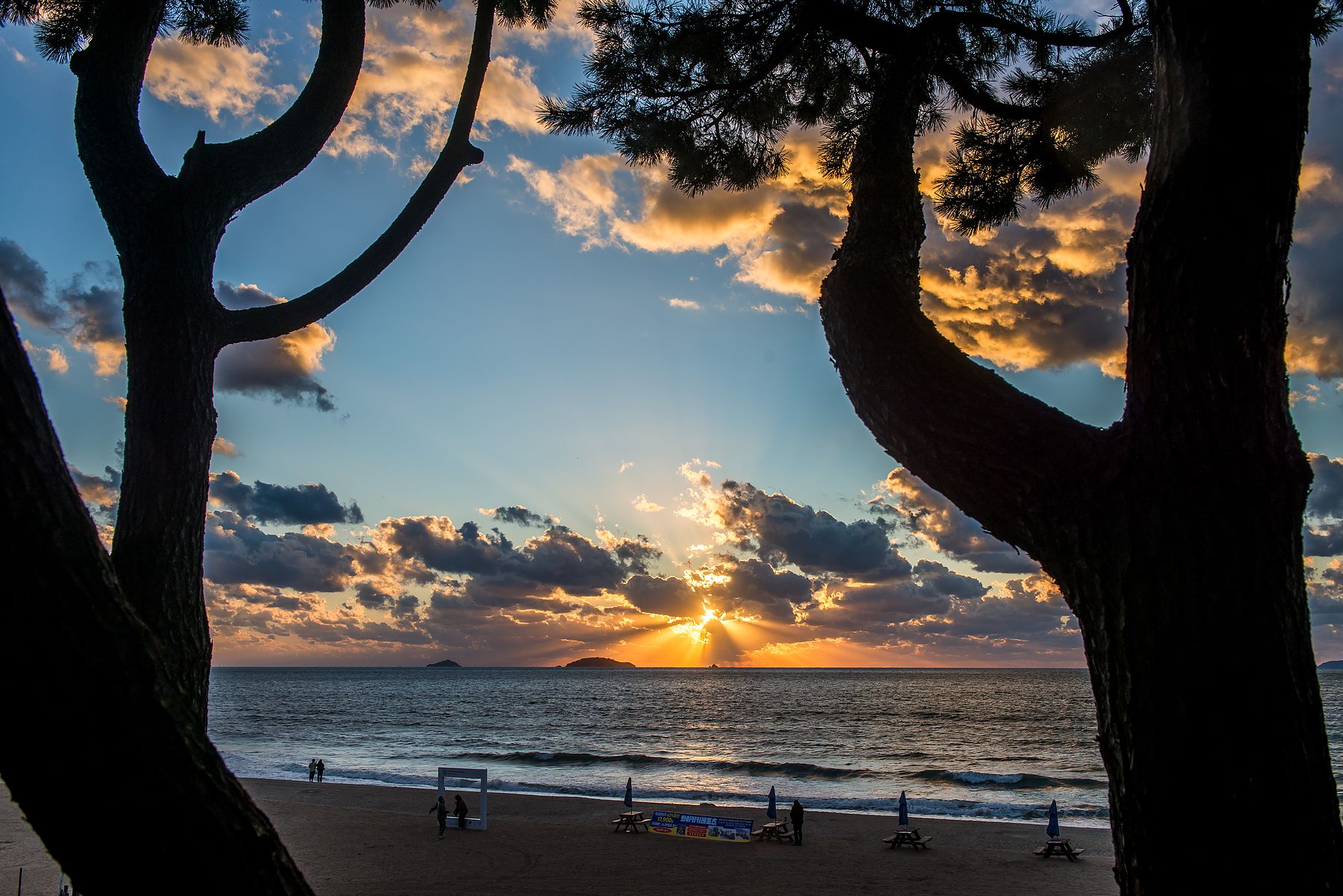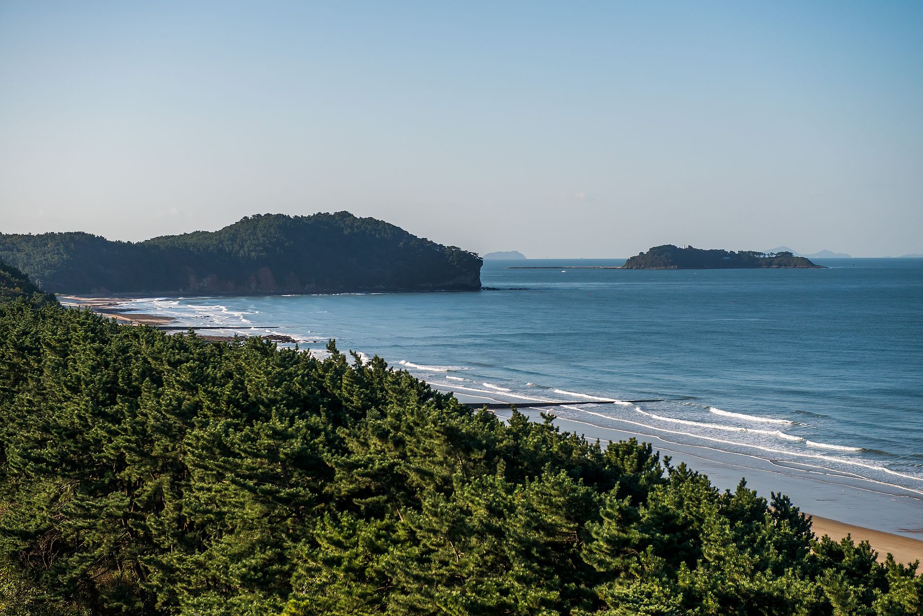 남쪽에 삐죽 튀어나온 곶(串) 과 작은 섬이 이 곳에서 보는 석양을 더욱 아름답게 해 줍니다.