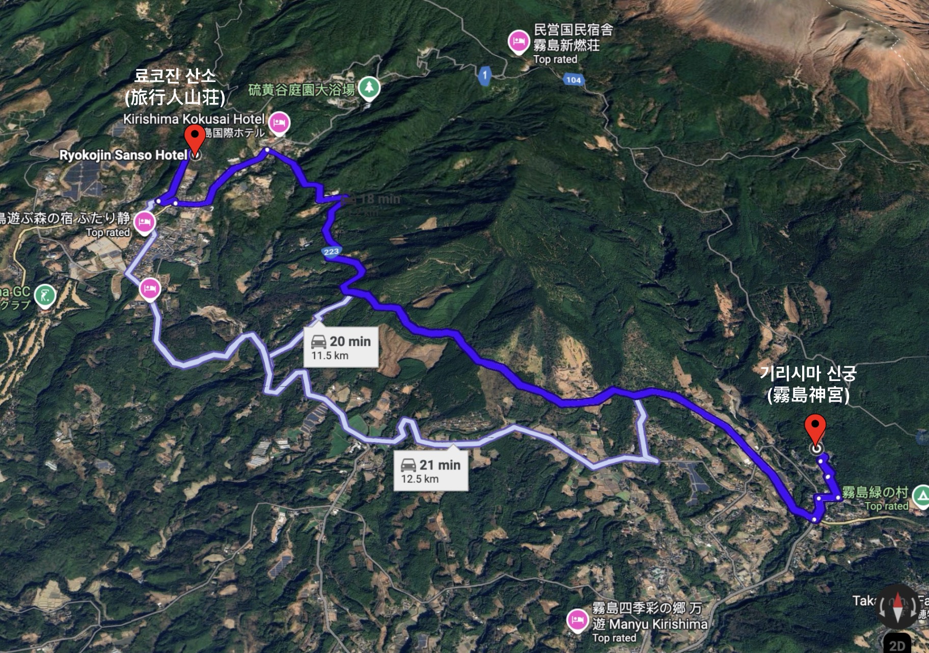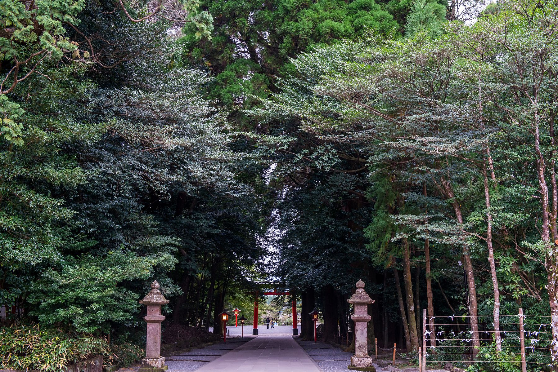 「료코진 산소(旅行人山荘)」에 짐을 내려놓고 저녁까지 시간이 조금 있어서 차로 20분거리의 기리시마 진구(霧島 神宮, 기리시마 신궁)를 갔습니다. 부근 숲이 좋다고 해서 산책 삼아 갔던 것인데 예상한 것보다 엄청난 크기의 신사(神社)라서 많이 놀랐습니다.