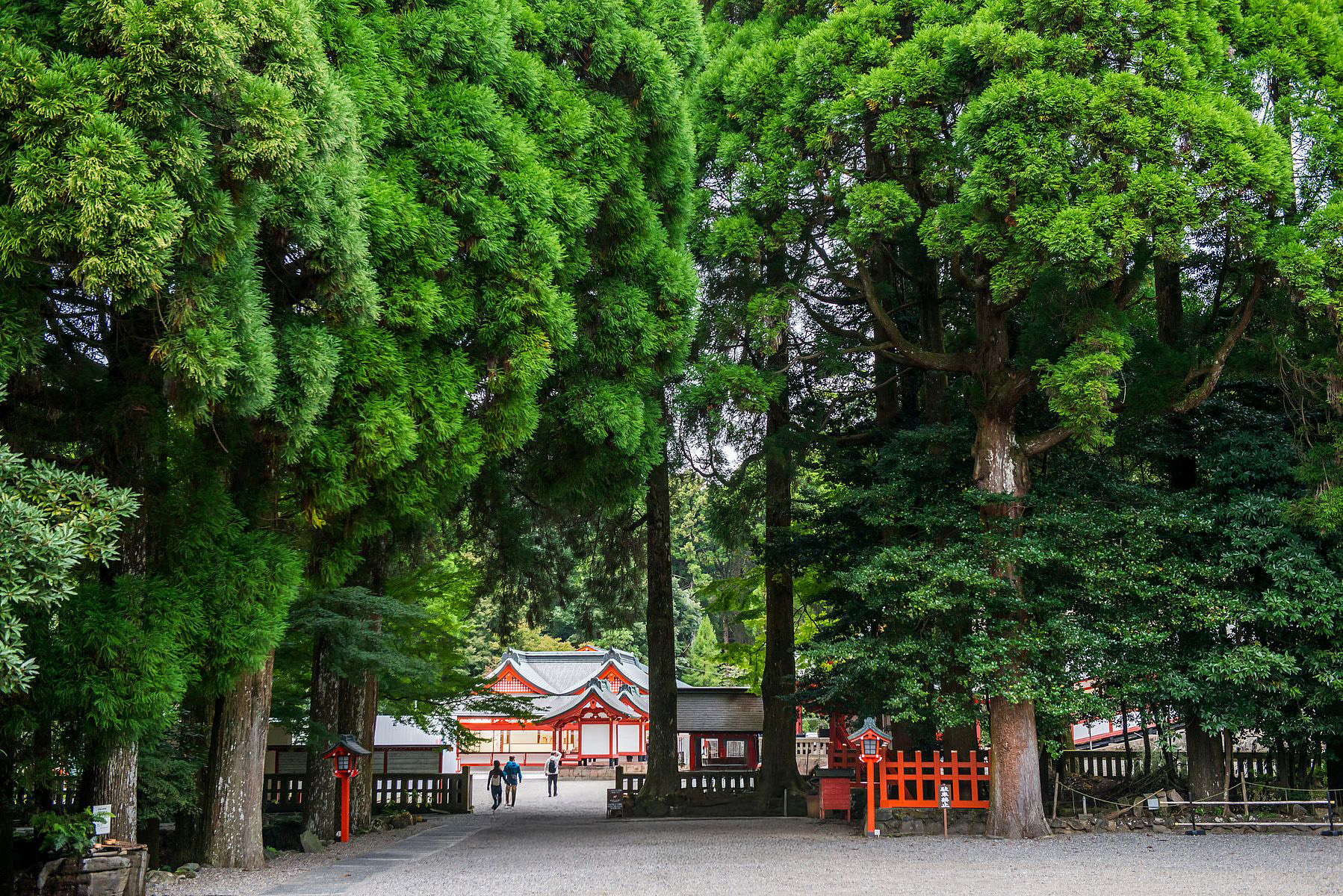 혼덴(本殿, 본전) 앞에서 입구 쪽으로 뒤돌아 본 전경