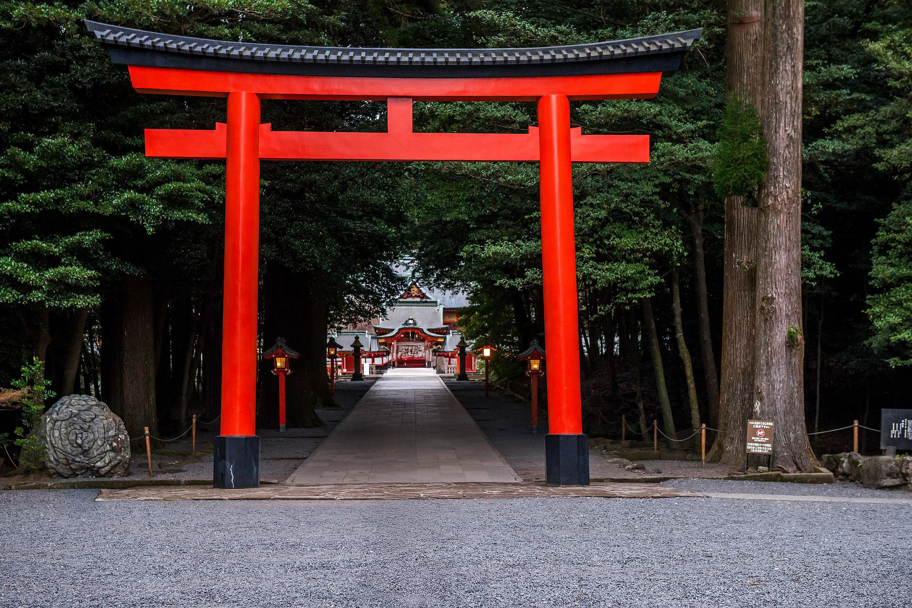 저희가 갔을 때는 평일이라 무척 한산했지만, 새해 첫날 몰려들 참배객들을 수용할 수 있는 대형 주차장이 있고 붉은 문 토리이(鳥居)를 지나 혼덴(本殿, 본전)으로 들어가게 됩니다.