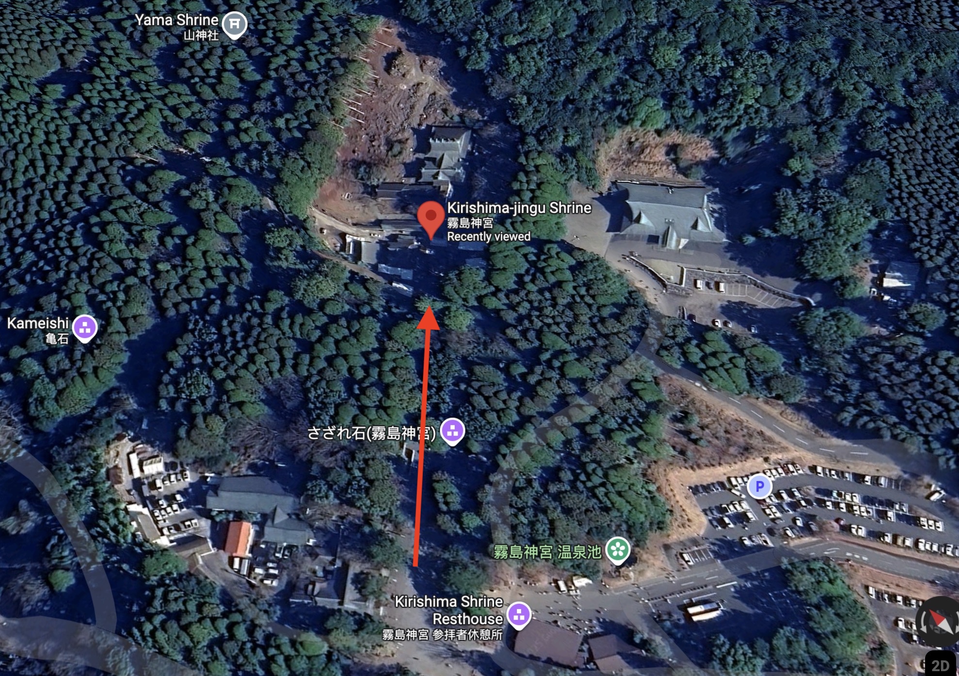 가고시마(鹿児島) 현과 미야자키(宮崎) 현에 걸쳐 있는 기리시마(霧島) 산 일대는 일본 건국 신화의 핵심 무대 중 하나이며, 특히 태양신 '아마테라스 오미카미(天照大神)'의 손자인 '니니기노 미코토(瓊瓊杵尊)'가 하늘에서 내려왔다는 '텐손강림(天孫降臨)' 신화의 구체적인 장소는 기리시마 연산의 최고봉인 「다카치호노미네(高千穂峰)」로 전해집니다. 이러한 이유로 기리시마 지역은 일본 건국 신화의 성지로 여겨지며, 「다카치호노미네」 산 정상에는 '니니기노 미코토(瓊瓊杵尊)'가 강림했을 때 꽂았다는 '아마노사카호코(天逆鉾)'라는 신성한 청동 삼지창(槍, spear, 일본어 표기는 鉾)이 정상에 상징적으로 꽃혀 있습니다.
