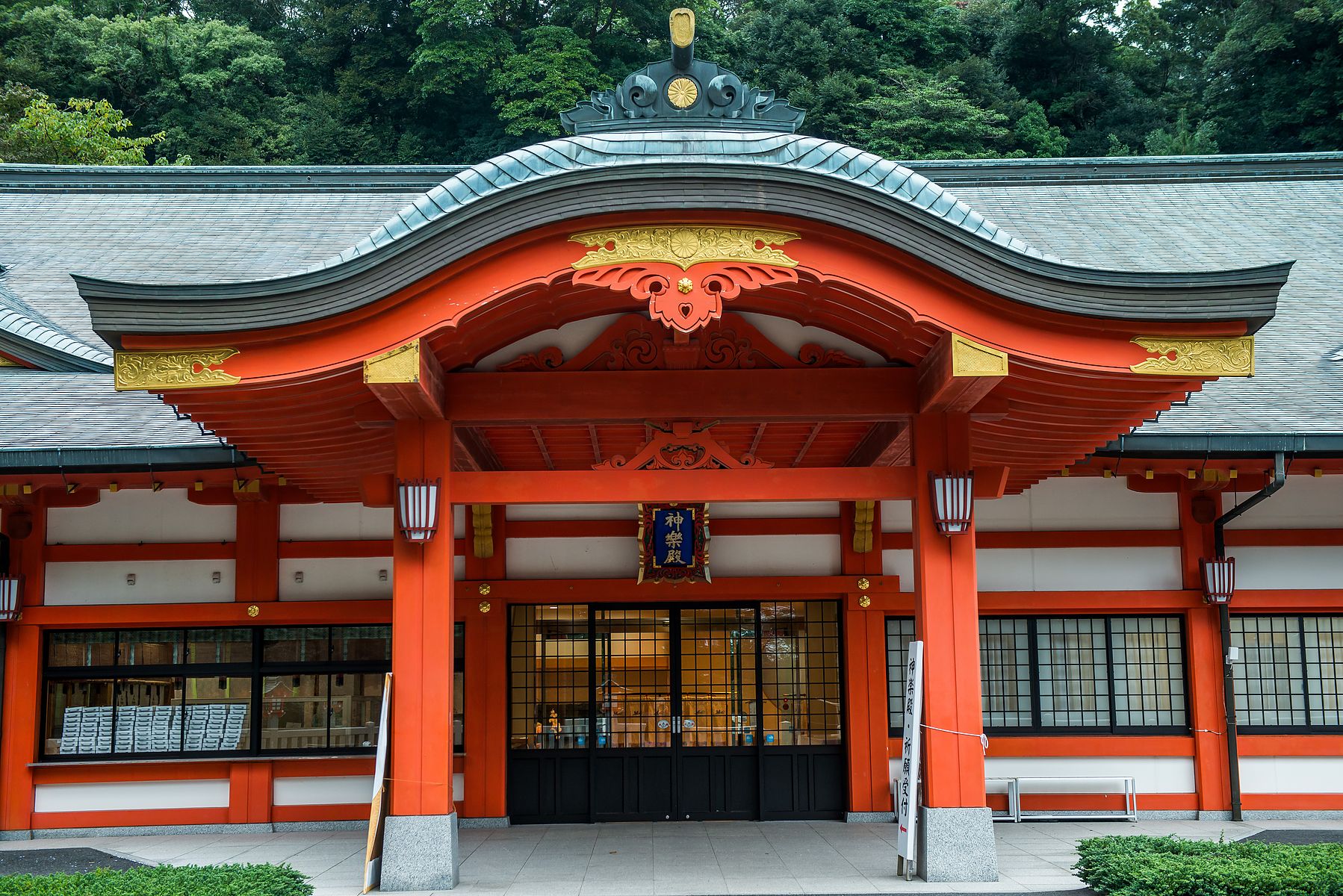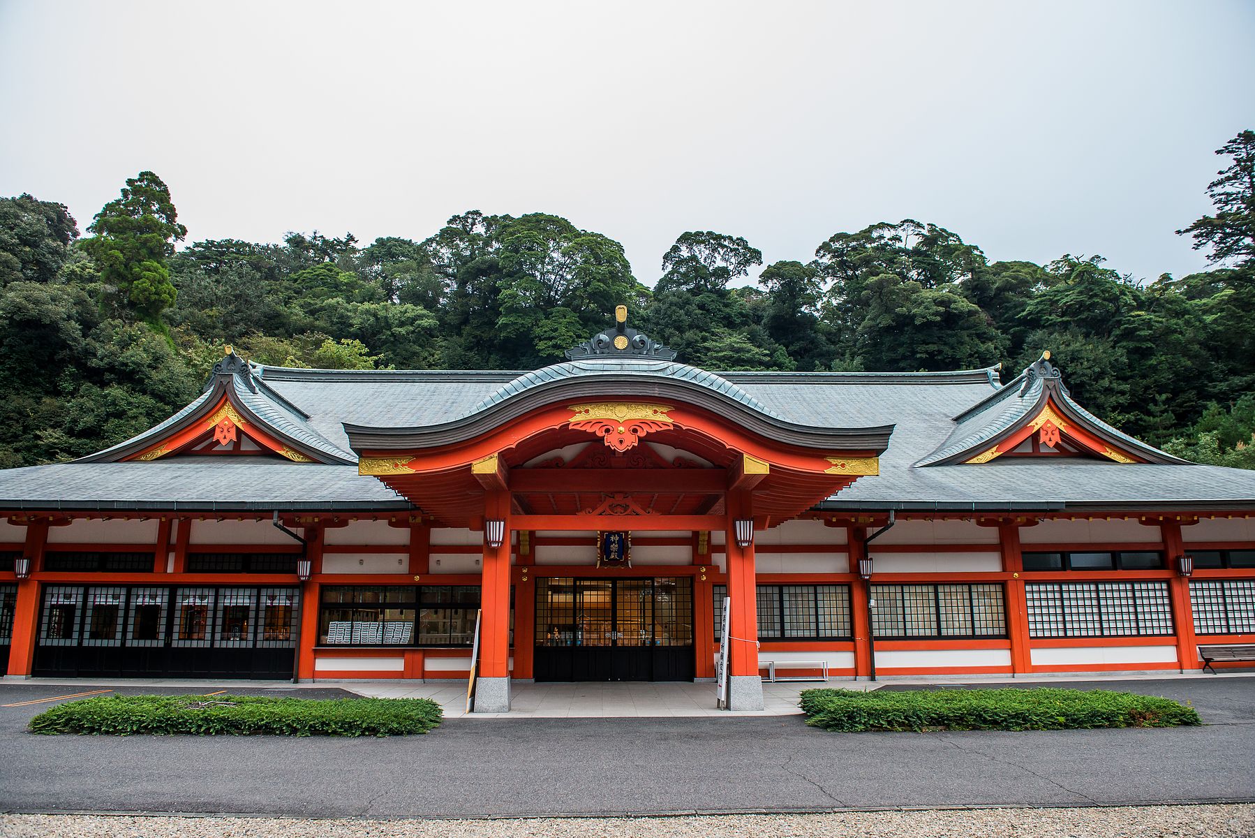 혼덴(本殿, 본전)의 3~4배되는 규모의 이 건물은 카구라덴(神楽殿, 신락전)이라는 곳으로 본래 신내림을 기원하며 추던 춤을 양식화하여 신사에서 제사나 특별한 행사가 있을 때, 기도와 봉납을 위해 무녀(巫女)나 전문 연기자들이 신에게 바치는 신성한 춤과 음악을 연주하고 공연하는 장소로 사용됩니다.