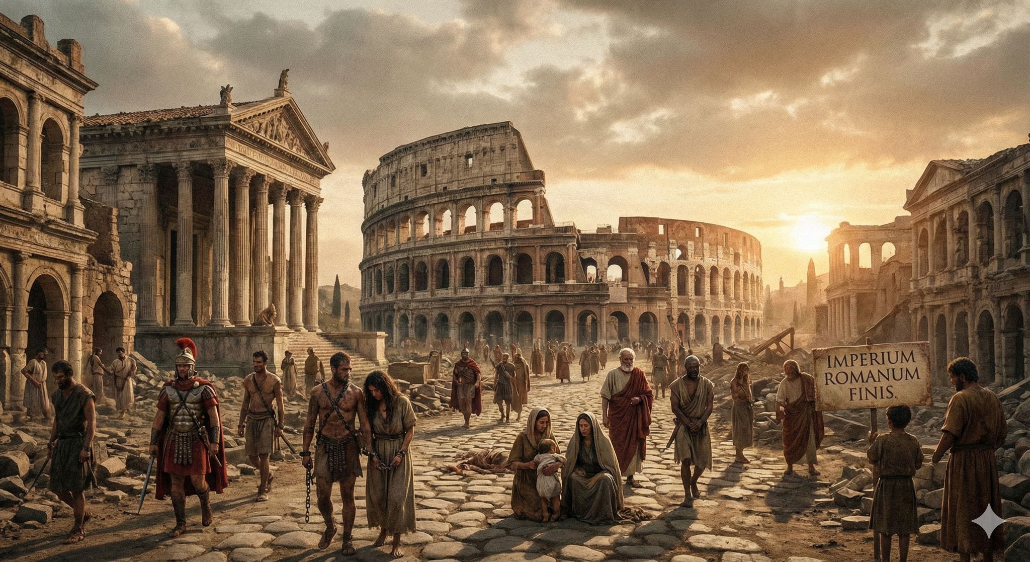 이상과 같이 로마를 양쪽에서 떠받치던 군대와 노예제는 스스로의 모순으로 저절로 무너져 버렸고, 그 강대했던 로마는 마지막 비명조차 없이 그냥 사라져 버린 것이었다.