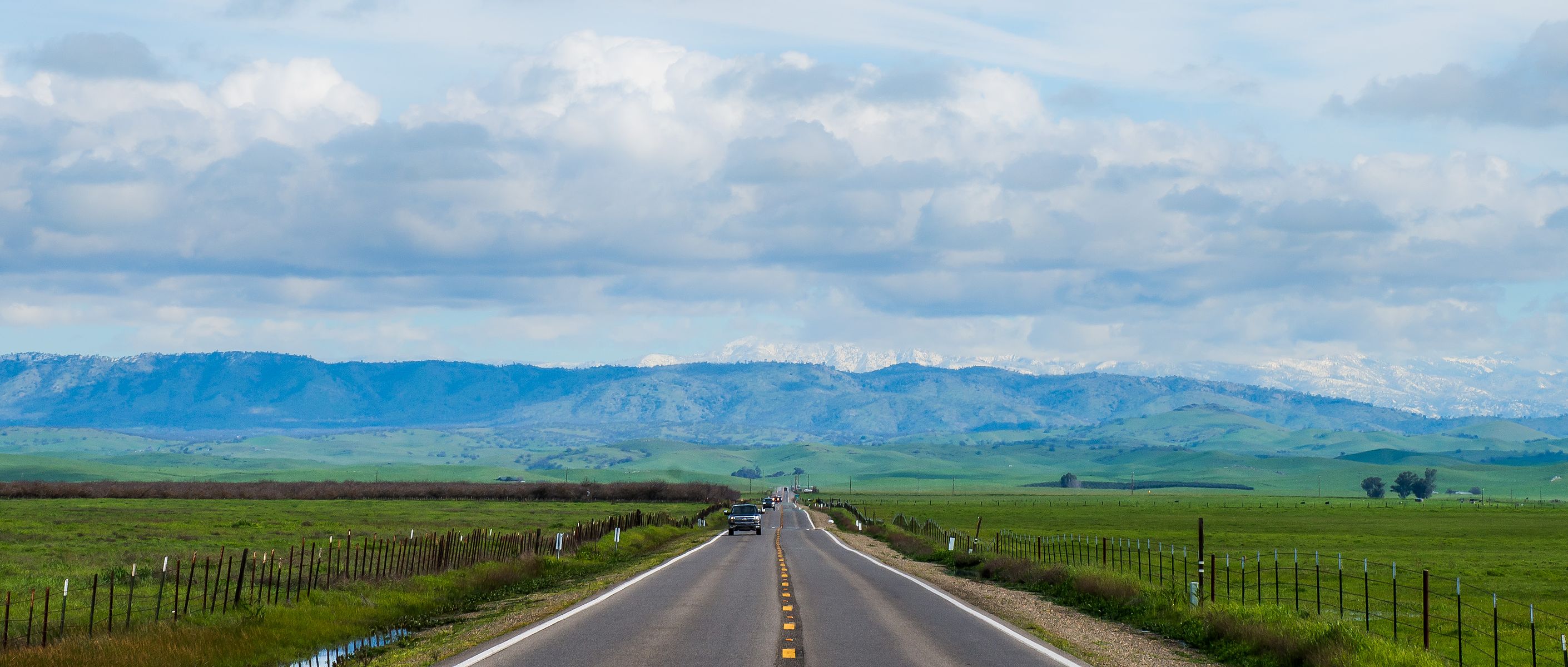 왕복 9시간의 시간을 들인 보람이 없어 많이 아쉬웠지만, 겨울비가 내려 Mariposa County 140번 도로를 오가는 좌우로 내내 펼쳐진 들판은 그림처럼 아름다왔고