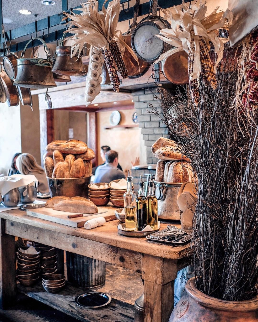 인기 있는 식당이라 원래 실내 테이블 배치 간격이 상당히 좁았는데, 코로나 바이러스 영향으로 널널하게 재배치 했습니다. 예전의 북적 거리는 분위기와는 사뭇 다르네요. 식당 이름인 Evvia는 아테네 (Athens) 북쪽에 위치한 그리스에서 2번째 큰 섬 이름인데, 식당 분위기를 격조 차리지 않고 편하게 먹을수 있는 깨끗한 지중해 동네의 느낌으로 꾸민것이라 합니다.