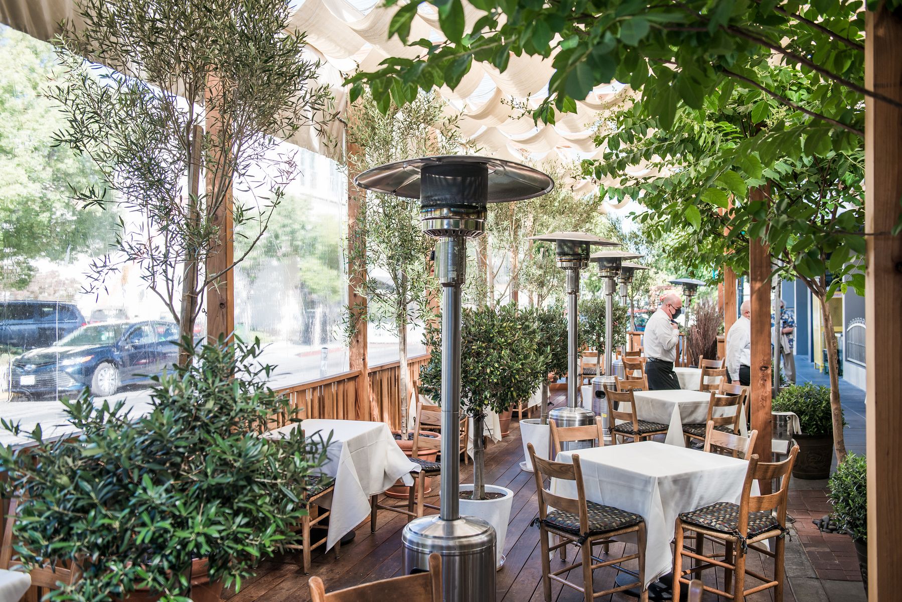 바깥 도로변에 나무 덱 (deck)을 설치하고 바람막이와 히터를 설치했는데 유럽 분위기 나서 실내보다 더 마음에 드네요.