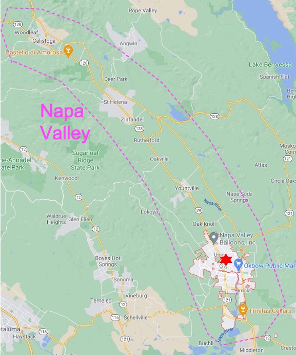 나파 밸리는 남쪽 나파 시 (Napa)에서 시작되어 북쪽 칼리스토가 시 (Calistoga) 까지 40분 정도 거리로 남북으로 길게 형성된 지역입니다. 엠버시 스위트는 나파 시 중간 정도에 위치하고 있습니다.