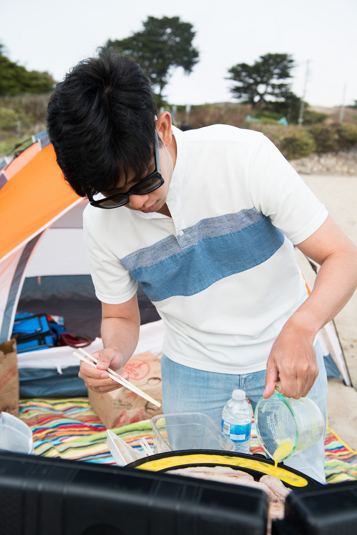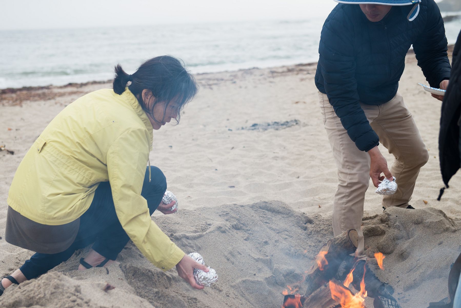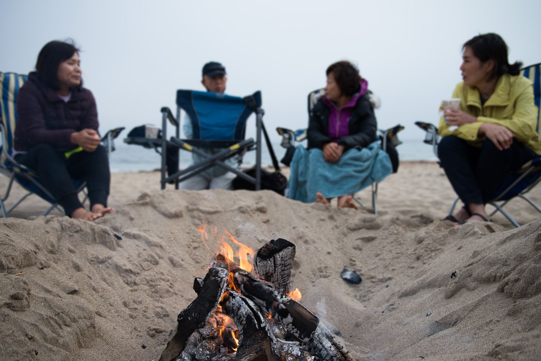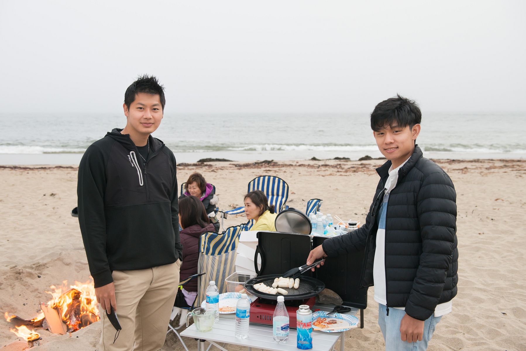 부모들은 모닥불 옆에 옹기종기 모여 코로나 기간동안 만나지 못해 밀렸던 담소를 나눴습니다. 한 여름인데도 해변이고 이 날 바람이 조금 불어서 꽤 쌀쌀했네요. (한여름에 샌프란시스코 방문하시는 분들은 반드시 긴팔 자켓을 지참하세요!!)