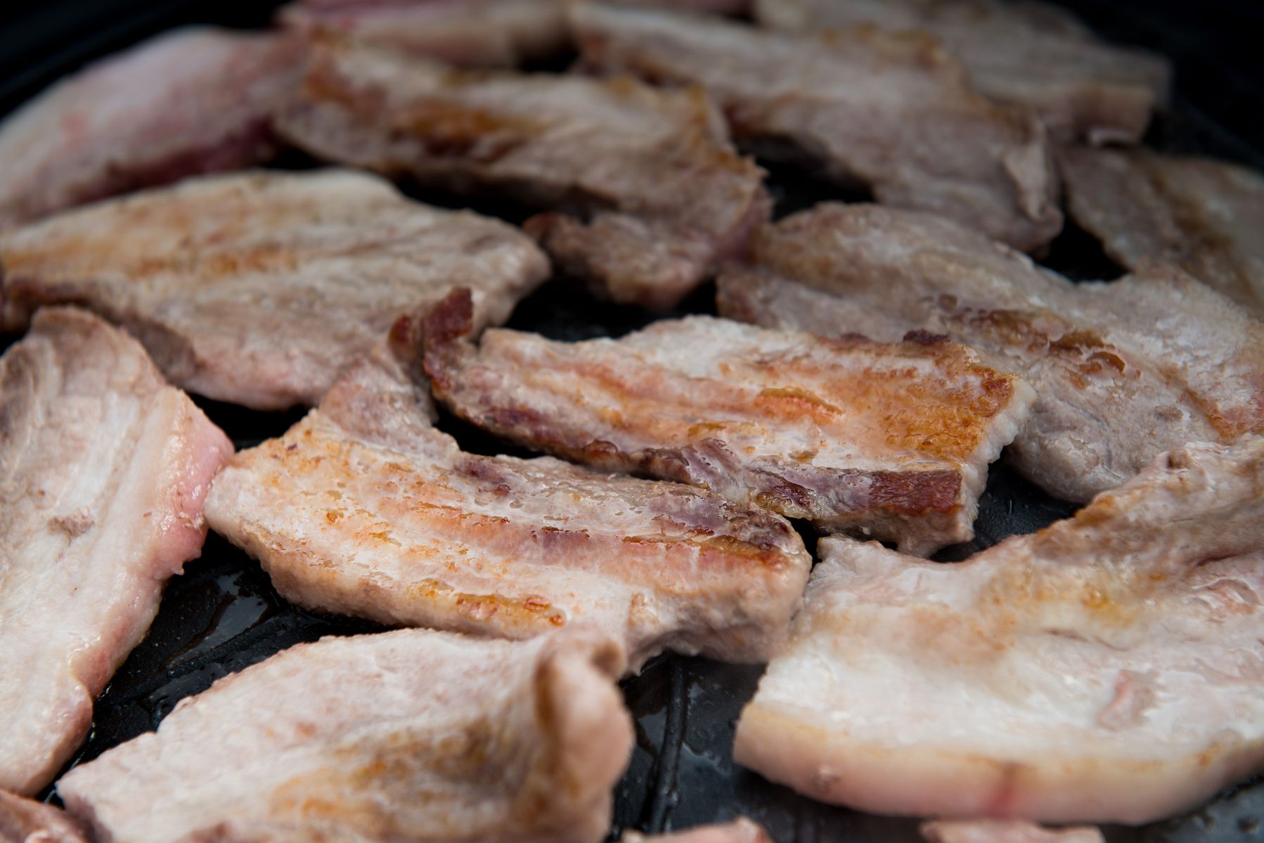 중앙에는 오늘의 메인인 두툼한 흑돼지 삼겹살이 지글지글~~~~ 겉바속촉으로...