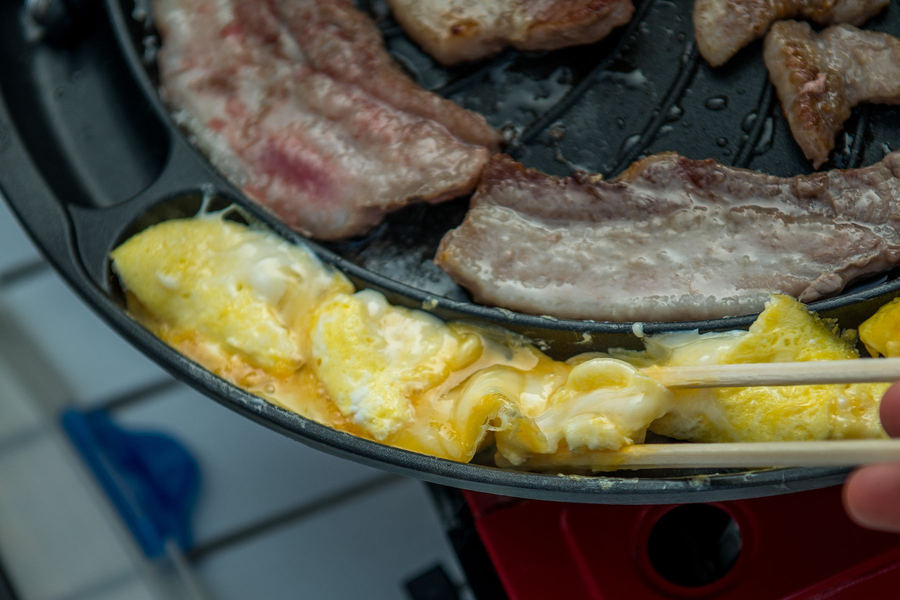 그릴 한편에는 모짜렐라 치즈를 넣은 오믈렛이 익어가고