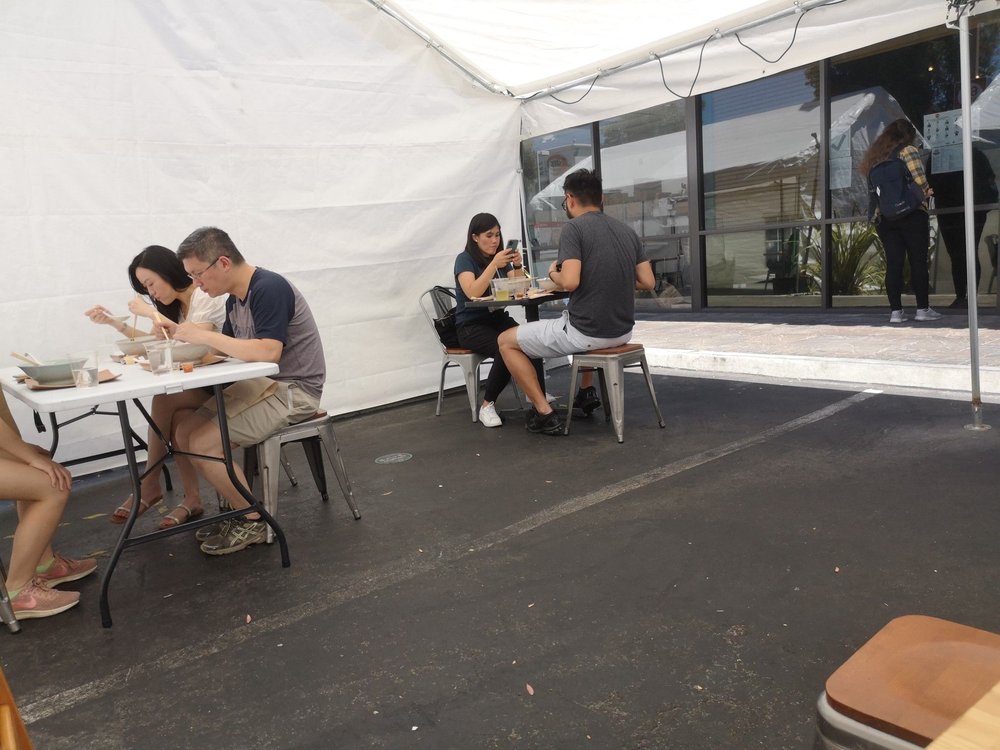 코로나 사태 시작되면서 배달/테이크아웃 만 하다가 요즘에는 바깥에 텐트를 치고 손님을 받고 있습니다.