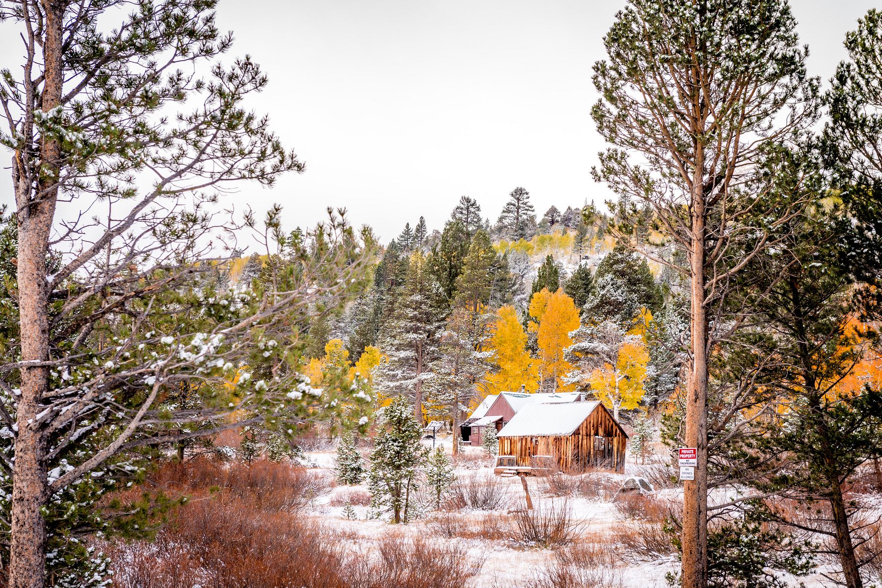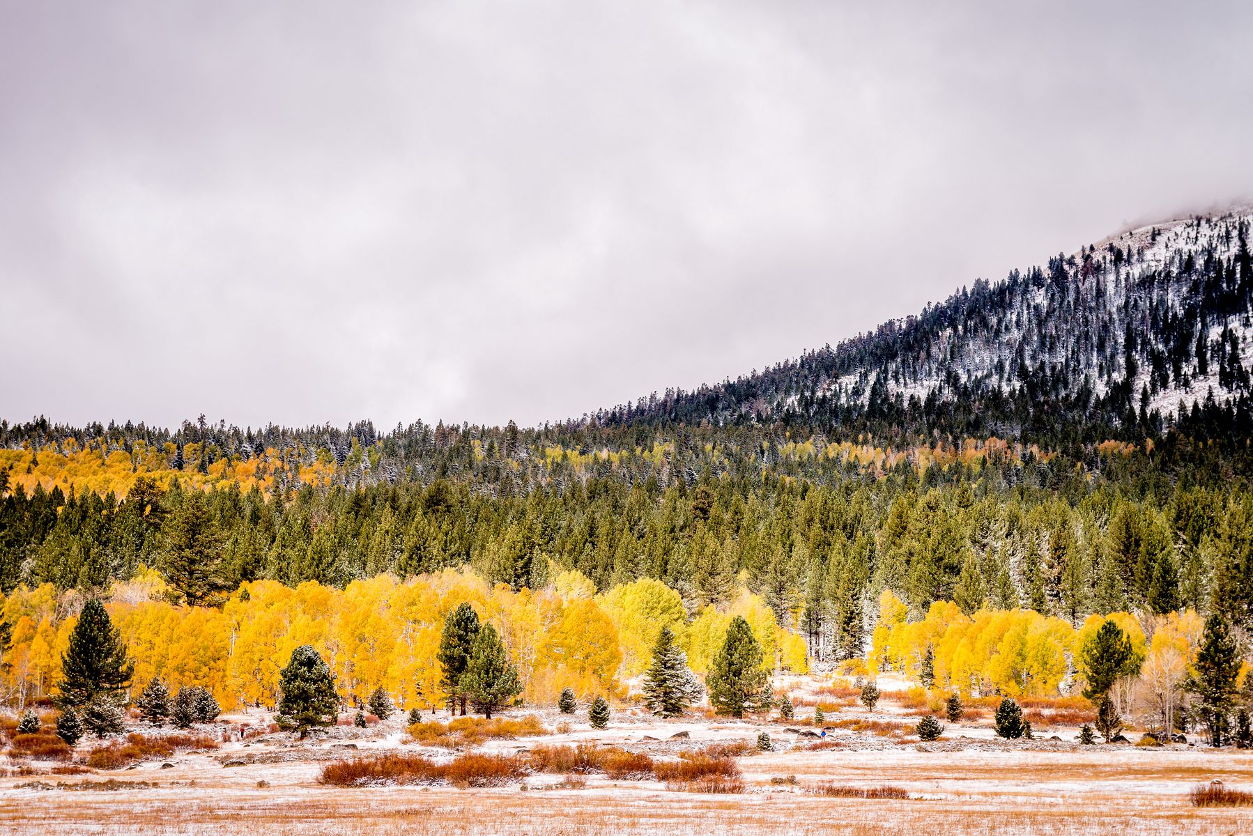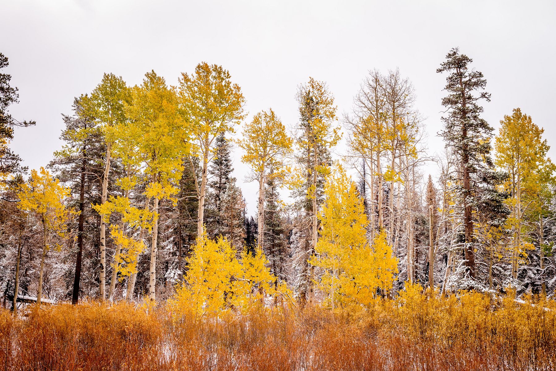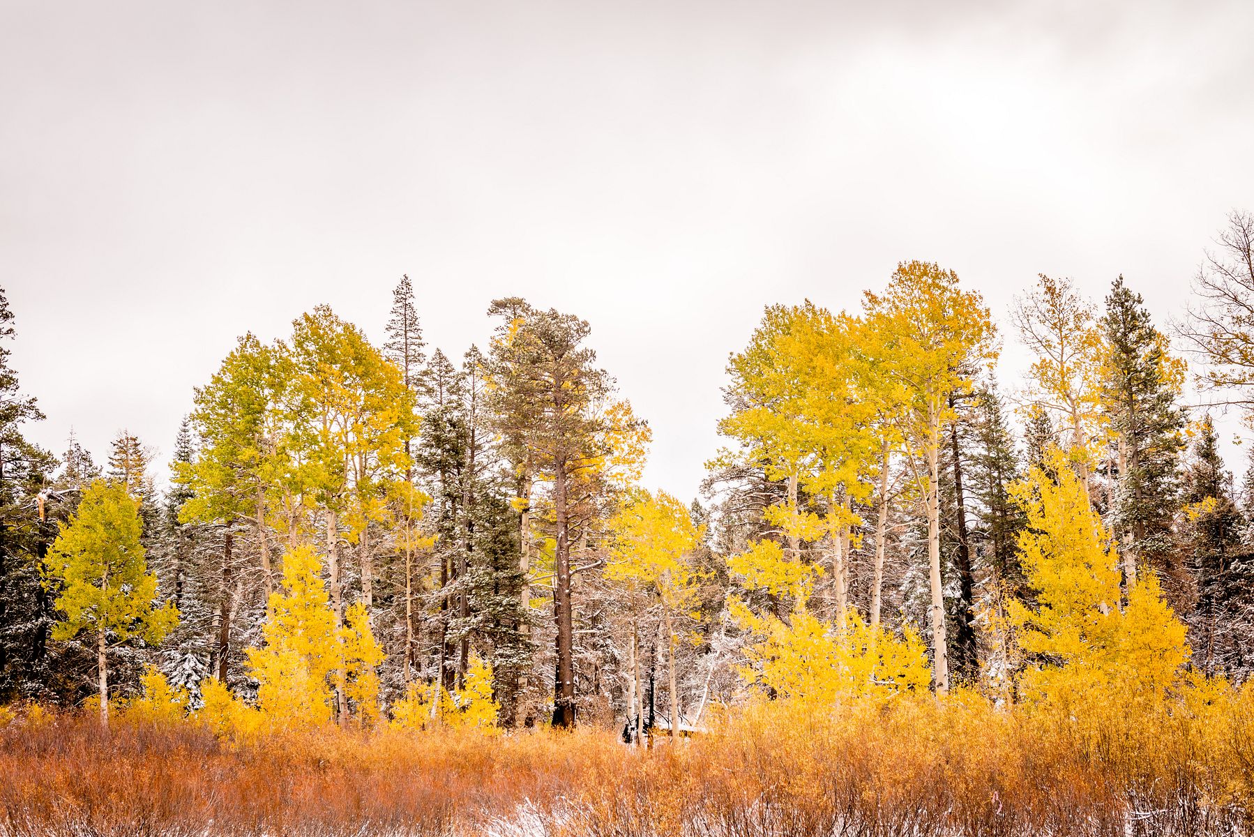 실버 레이크를 지나 조금 더 가다보니 사시나무 (aspen) 들이 예쁘게 물들어, 눈 덮인 소나무 (pine) 숲속에서 자태를 뽐내고 있습니다.