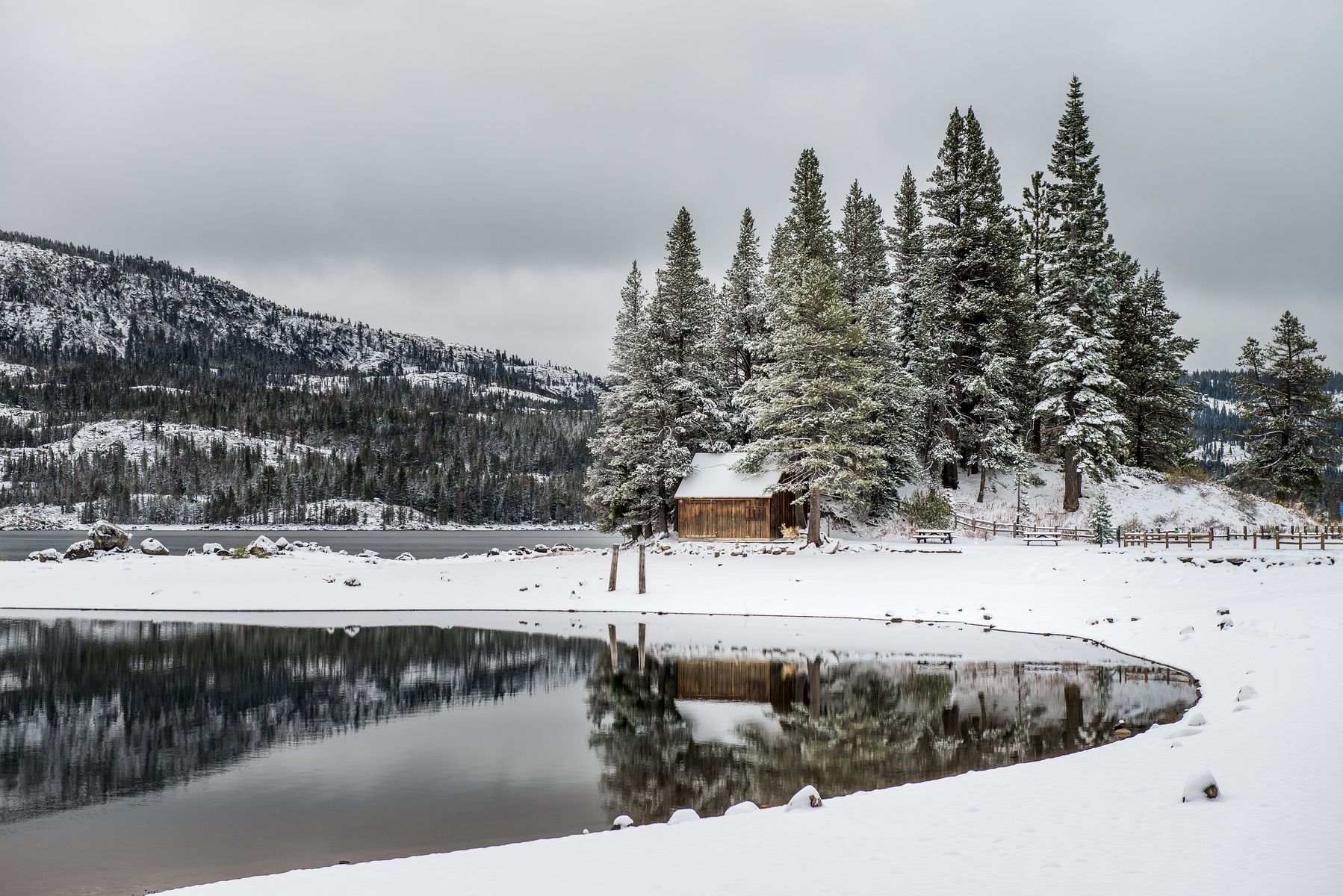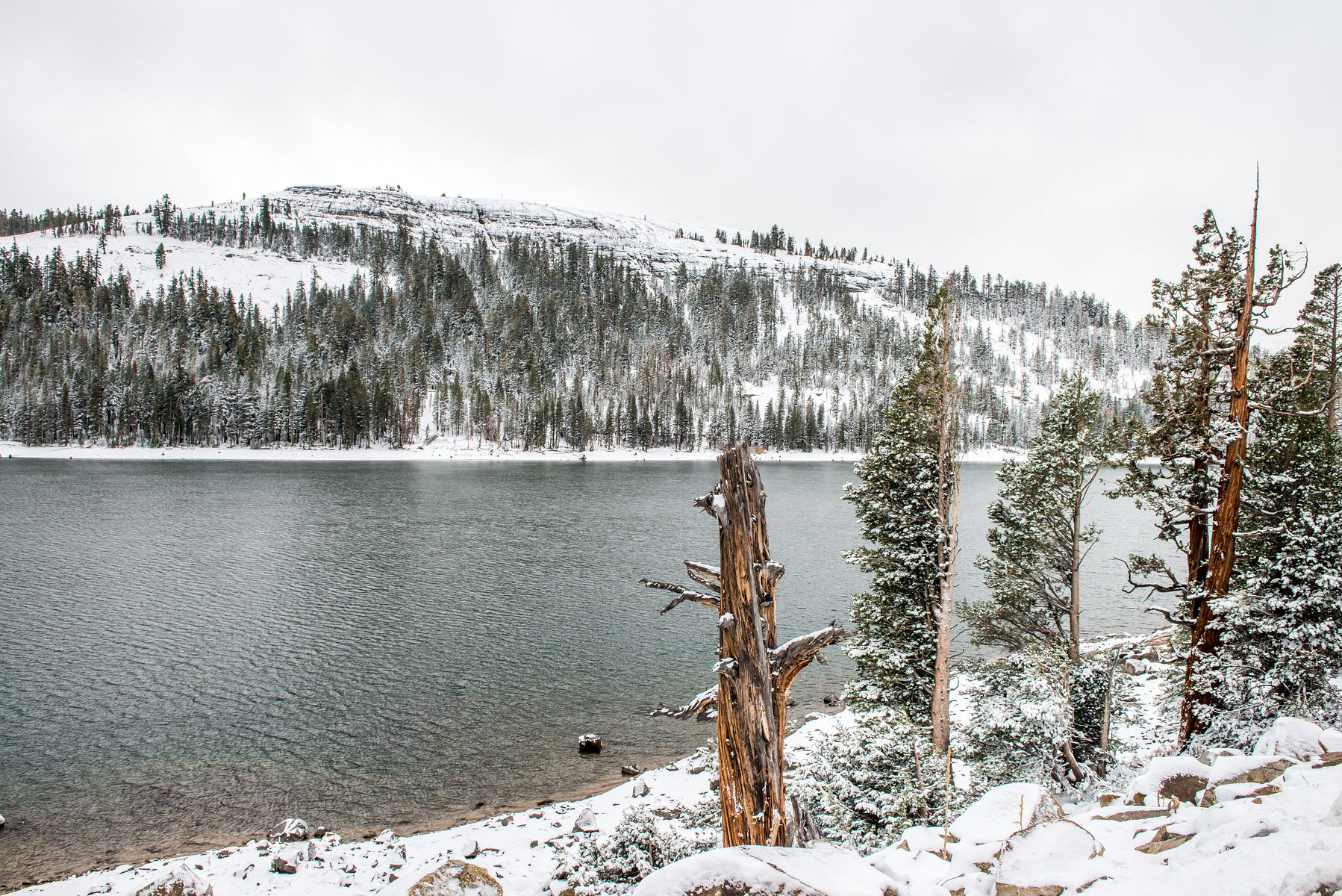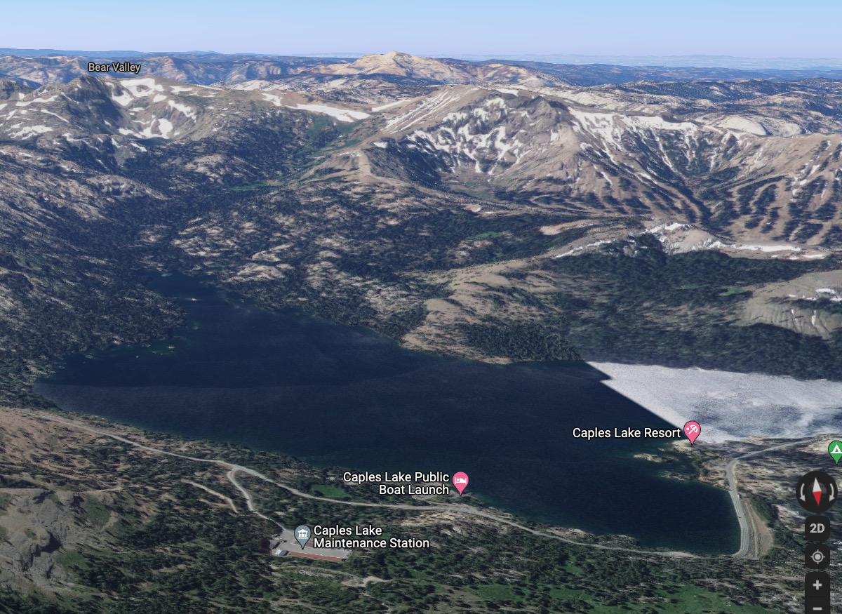 이제부터는 내리막길입니다. 캐이플스 레이크 (Caples Lake)라고 상당히 큰 호수가 있습니다. 이곳은 주변이 완전 침엽수림이라 한겨울 분위기네요 😜
