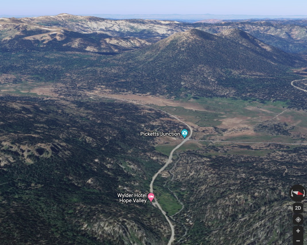 CA-88 도로의 최정상 부근입니다. 해발 8,290 피트 (2,527 미터) 니까 높이가 꽤 되지요.