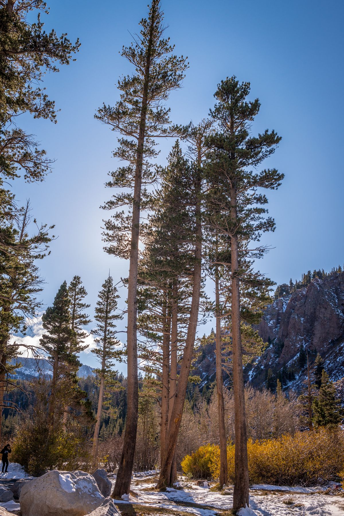 모노 레이크에서 비숍 (Bishop) 숙소까지가 약 1시간 거리인데, 저녁 골든 타임 시작 전에 비숍 인근의 호수까지 도착하려면 가는 길의 호수는 하나만 골라야 했습니다. 대표적인 호수가 쥰 레이크 (June Lake)와 트윈 레이크 (Twin Lake) 인데 두 곳 다 사람들이 많이 가는 곳이라 그나마 좀 덜 붐빌 것 같은 트윈 레이크로 결정을 했습니다. 그런데, 돌아와서 정보 사이트를 보니 지난 주 가을색의 절정은 쥰 레이크였더군요 😭 조금만 더 미리 찾아볼 것을......