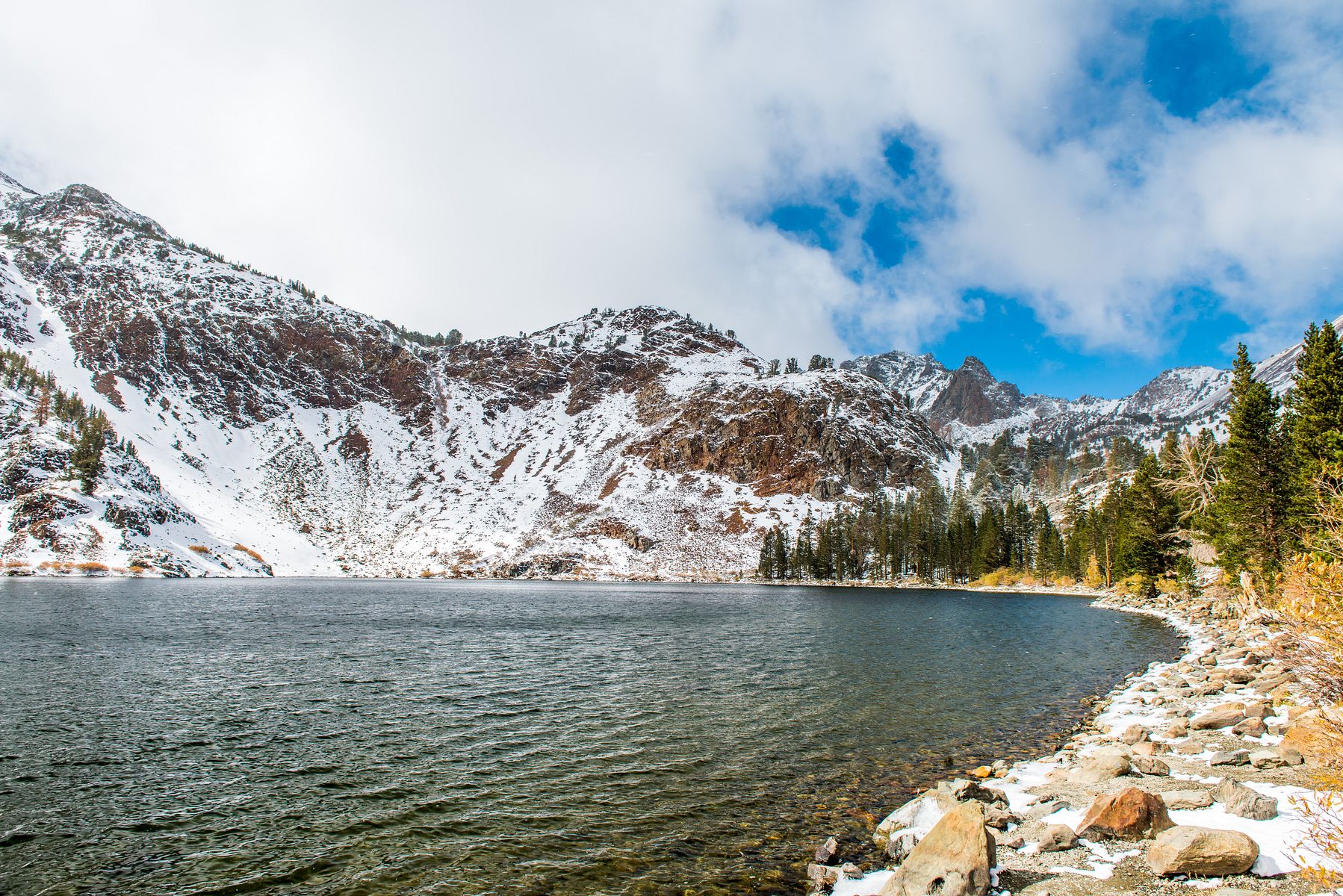 올라가는 길 주변을 보니, 시기적으로 늦었나 싶었는데 도착해보니 아니나 다를까 너무 늦었네요. 고지대인지라 사시나무 (aspen) 들은 이미 잎이 다 떨어져 이미 초겨울 분위기입니다. 송어가 많아 낚시꾼들에게 인기가 높은 곳이라더니 물은 참 깨끗하고 좋습니다. 바람까지 꽤 불어 호수의 반영도 담을 수 없는 상황이었습니다. 주변에 작은 호수들이 몇개 더 흩어져 있는데 아쉽지만 포기하고 내려가기로 했습니다. 다음에 이곳을 오려면 늦어도 9월 말까지는 와야할 듯 합니다.