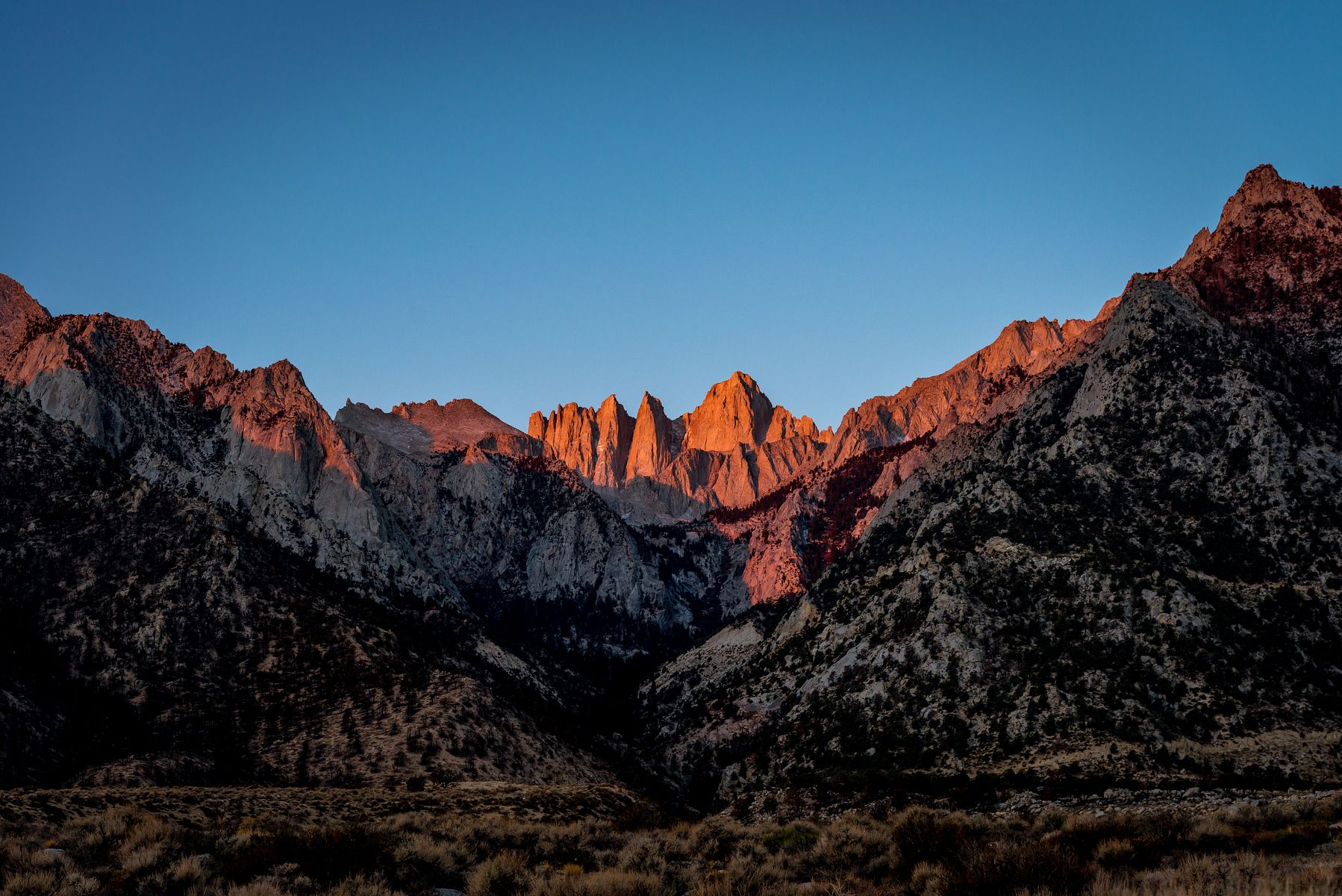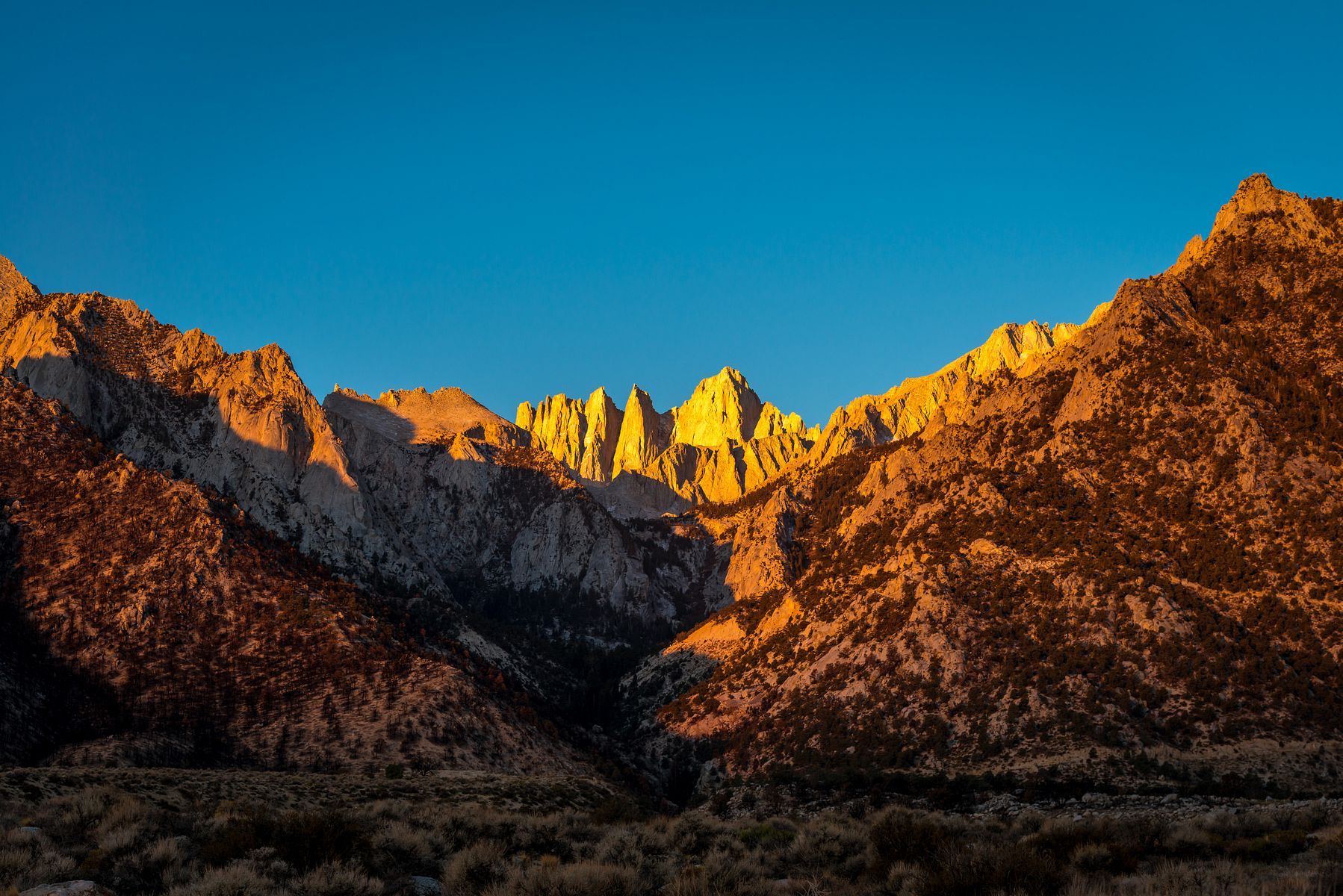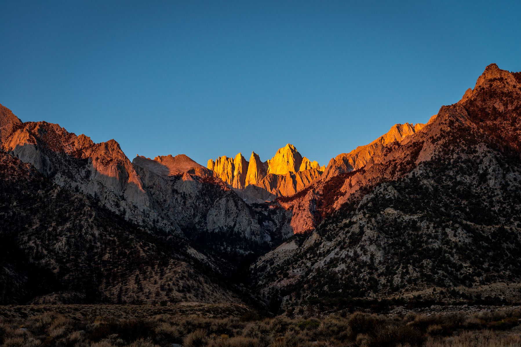 해발 4,421m의 휘트니산 (Mt Whitney) 은 막판에 450m의 험한 암벽을 포함하고 있어 아마추어가 도전 하기에는 꽤 무리가 많은 산입니다. (정상 등정기) 매년 2월 1일부터 3월 15일 사이에 등반 신청을 해서 추첨을 하여 받는 허가증 (permit) 이 있어야만 입장이 허용되는데, 허가증이 없이 갈 수 있는 경계선 부근에 론 파인 레이크 (Lone Pine Lake)라는 작은 호수가 있고 제 행선지는 거기 까지만입니다.