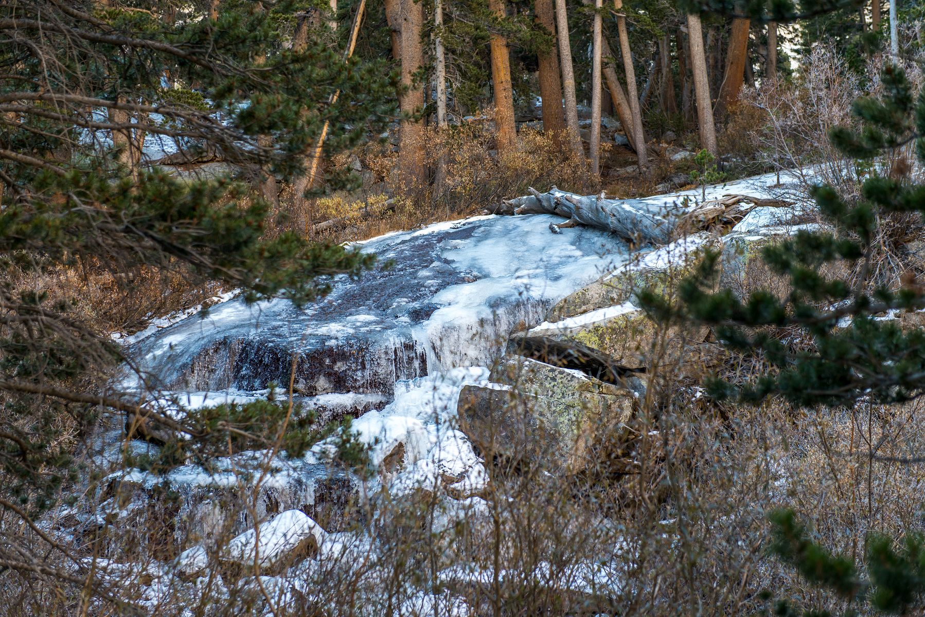 약 4.2Km의 계속된 오르막길 후에 나무 징검다리가 하나가 나옵니다. 살얼음이 낀 개울물을 건너서 조금 더 가면 작은 "Lone Pine Lake" 팻말이 나와 왼쪽으로 내려가라고 합니다.