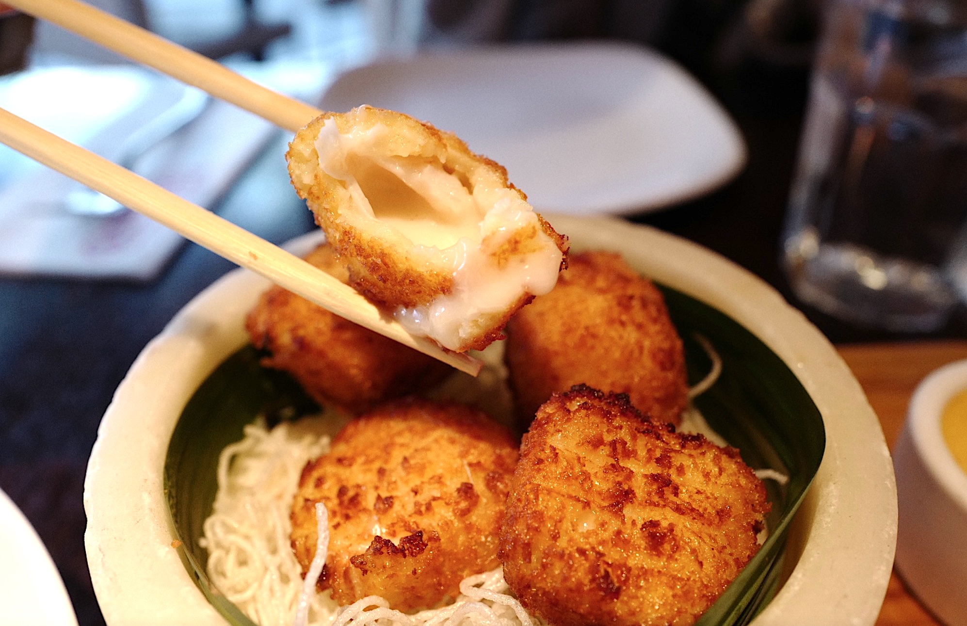 "리치 치즈 팝 (Lychee Cheese Pop)" $8.95. 여지(lychee) 안에 모짜렐라 치즈를 넣어 튀긴 것으로 식감과 단짠 조합이 훌륭했습니다. 이건 집에서도 쉽게 모방해서 만들 수 있을 것 같아요 😁