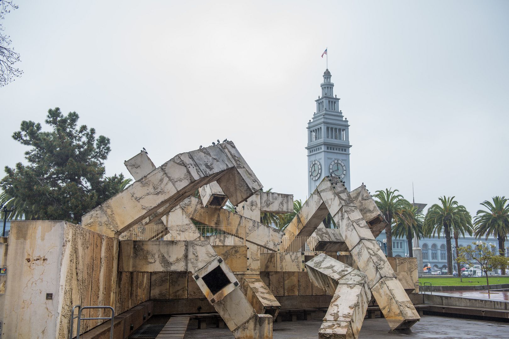 플라자에서 바라본 페리 빌딩입니다. 저 못생긴 조형물은 "Vaillancourt Fountain" 이라는 조형물로 물이 흘러 나오는데, 이 날은 비가 와서 물을 잠가놨군요.