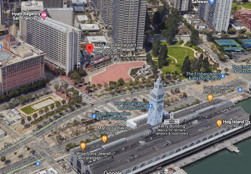 "오샤 타이 (Osha Thai)" 는 그 페리 빌딩 건너편 상가 1층에 위치하고 있습니다.