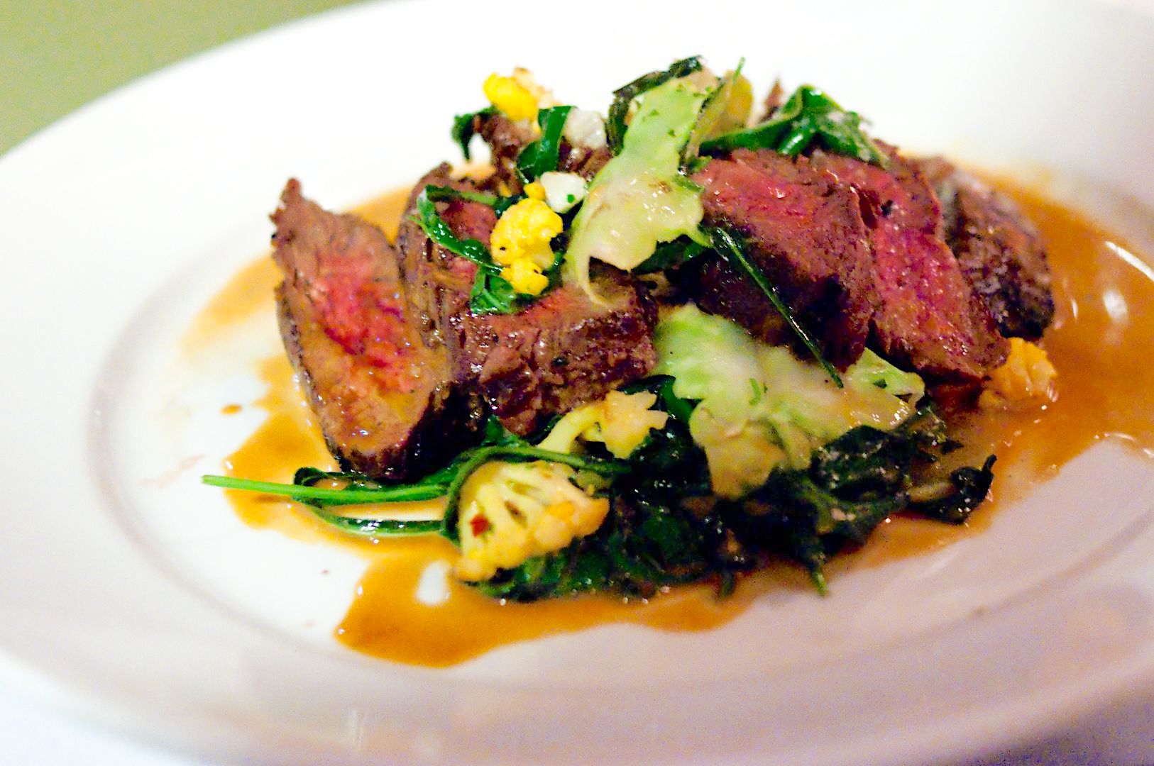 고기 요리도 훌륭하고요. (hanger steak) 별스럽지 않게 얹은 채소 가니쉬 (garnish, 고명) 도 너무 신선한 재료를 쓴 것이 돋보입니다.