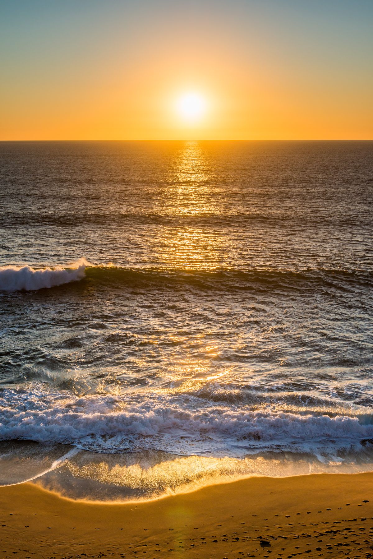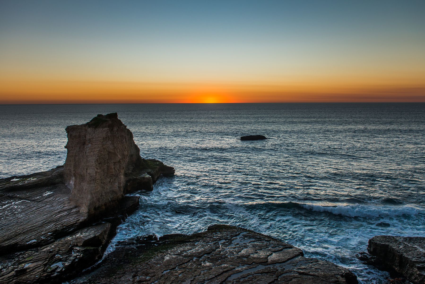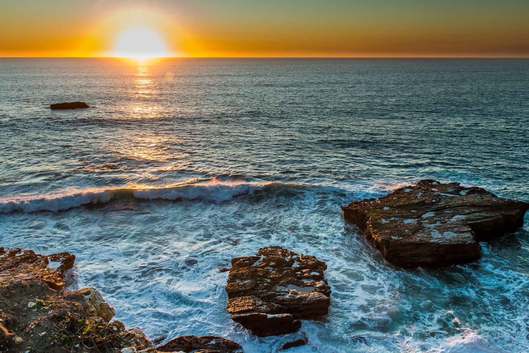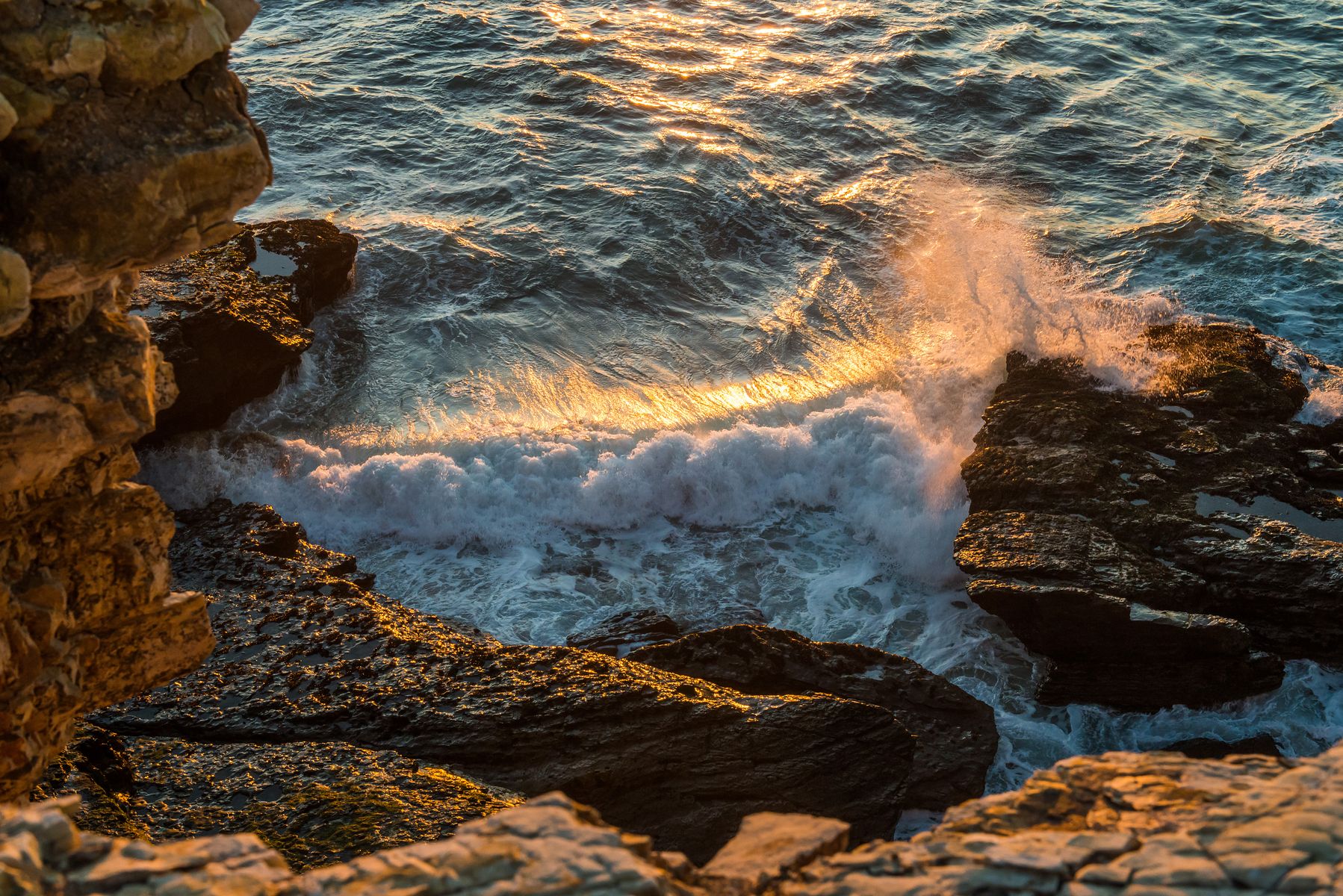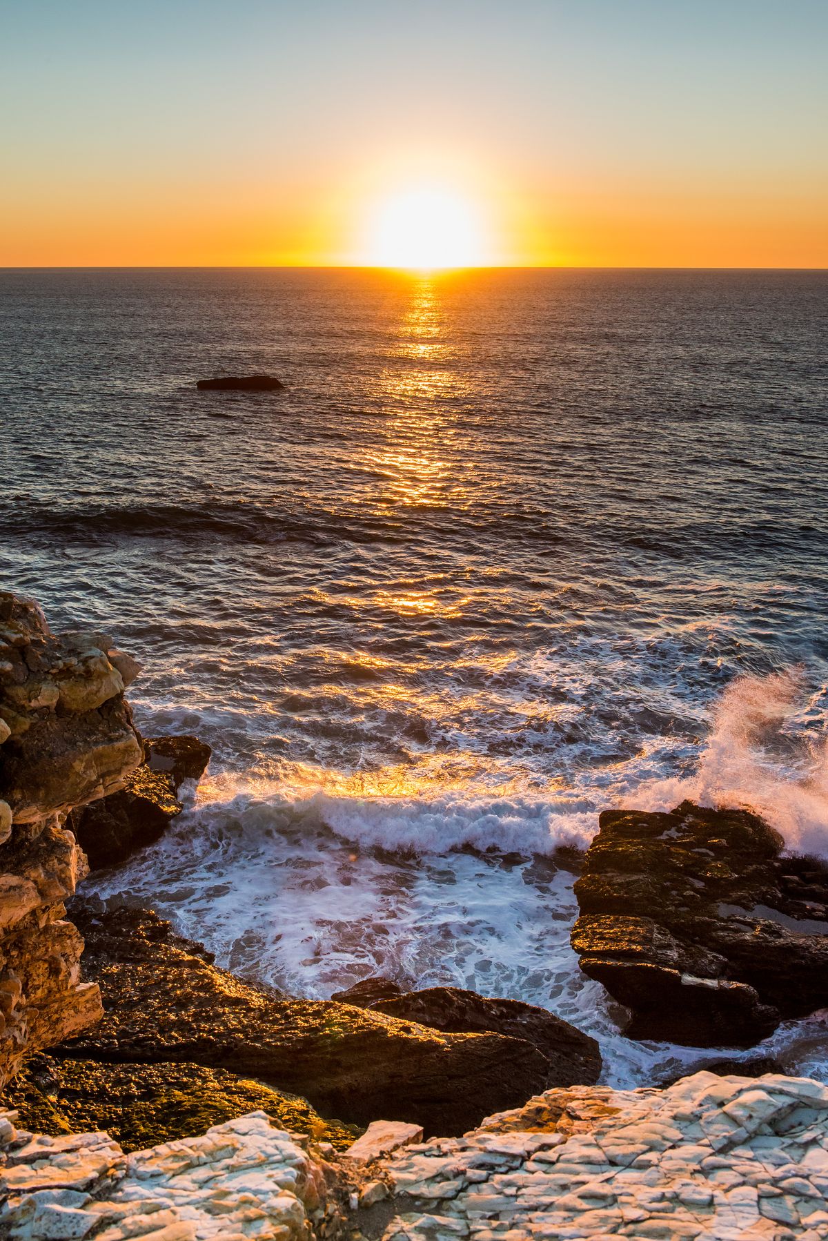 5시가 되니 해가 지기 시작해서, 바닷물과 절벽을 아름다운 금색으로 물들여 줍니다.